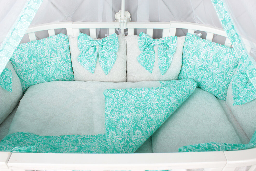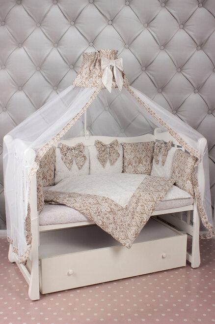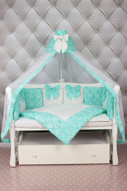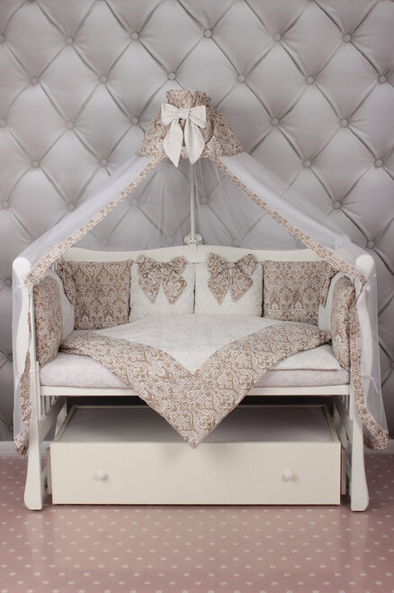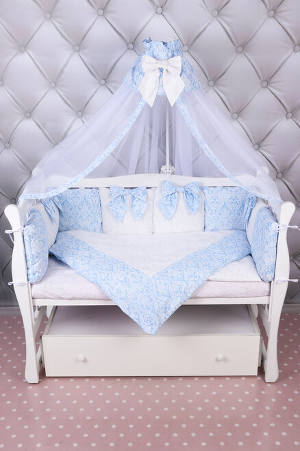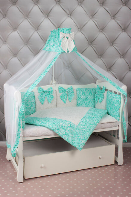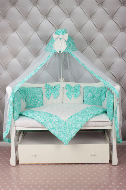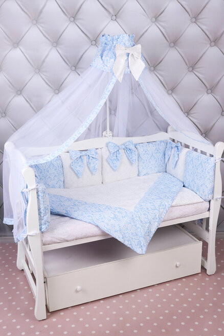 Комплект в кроватку AmaroBaby ЭЛИТ Premium (амаробеби элит премиум) - элегантный, красивый и недорогой комплект с большим количеством предметов, которые украсят детскую кроватку. В наборе 18 предметов! это подушечки разного дизайна, универсальная простынь на любой матрас, красивый балдахин, одеяло с пододеяльником, подушка с наволочкой. Все выполнено из качественного и гипоаллергенного хлопка (бязь), легко стирается и надолго сохраняет свой первоначальный вид.
