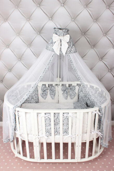 Комплект подойдет для круглой, овальной или прямоугольной кроватки. Простынь на резинке универсальная, она подойдет для круглого и овального матраса размерами 75х75 и 75х125 см, а так же к прямоугольному матрасу 120х60 см.