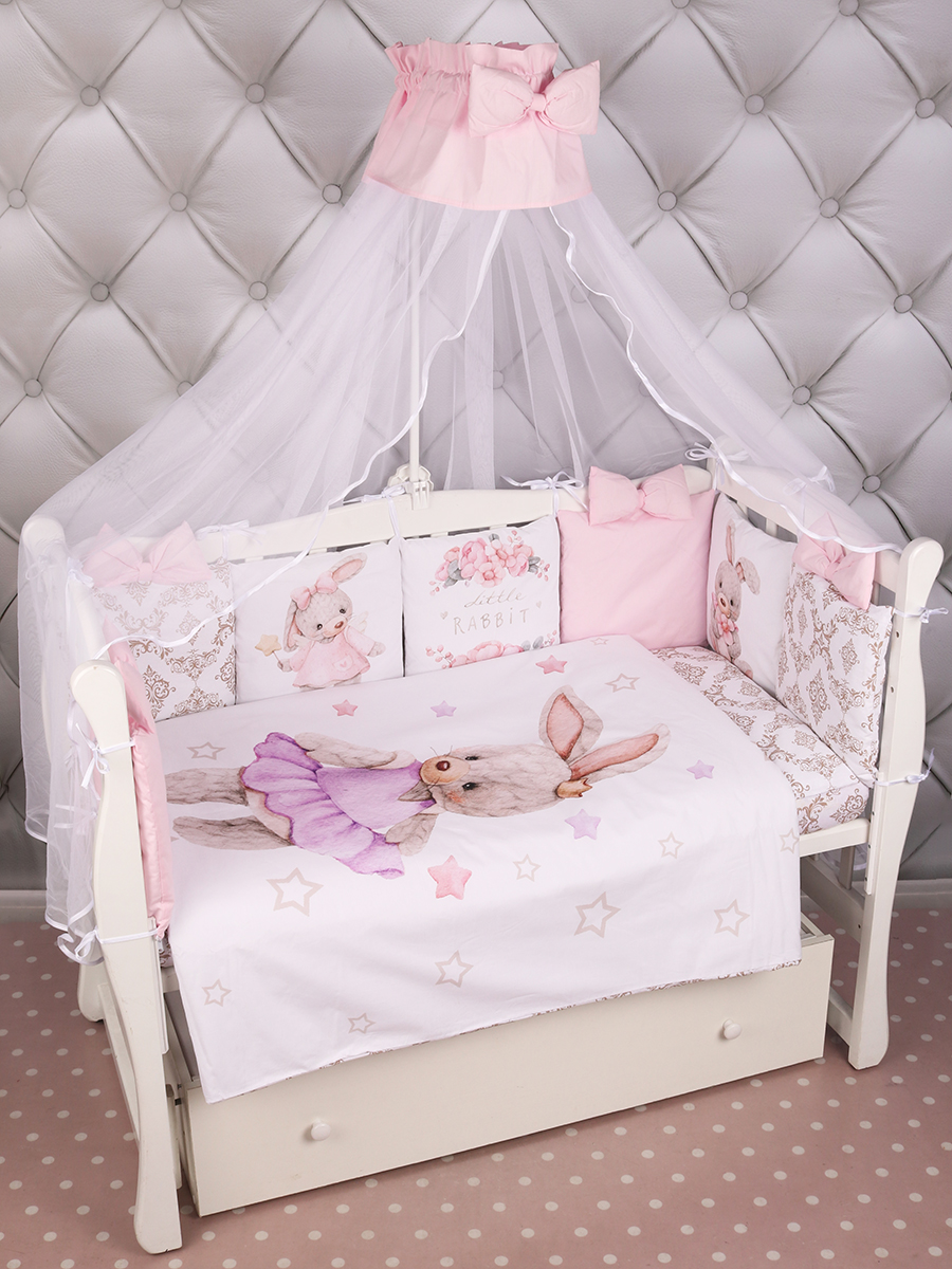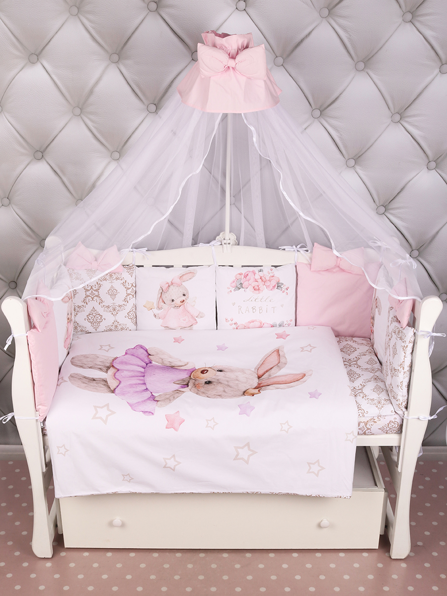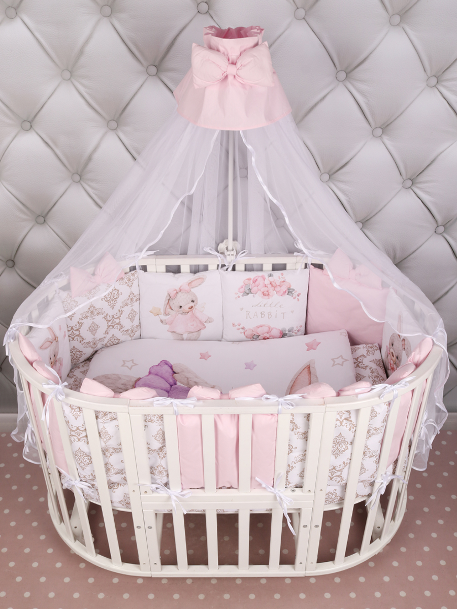 Бортик представлен в виде 12ти подушек на завязках, наволочки на бортиках съёмные. Мягкий наполнитель бортика обезопасит сон вашего малыша. Пододеяльник на молнии.