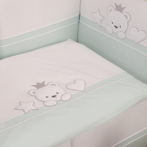 Комплект в кроватку Lepre Miky (Лепре мики) - очень нежный красивый комплект, состоящий из бортиков и постельного белья для новорожденного. Все что нужно для комфортного сна малыша в кроватке выполнено из качественного, экологического хлопка. Изготовлен по стандартам CONFIDENCE IN TEXTILES, имеет европейский сертификат.