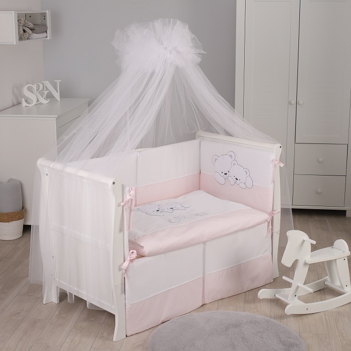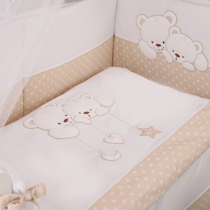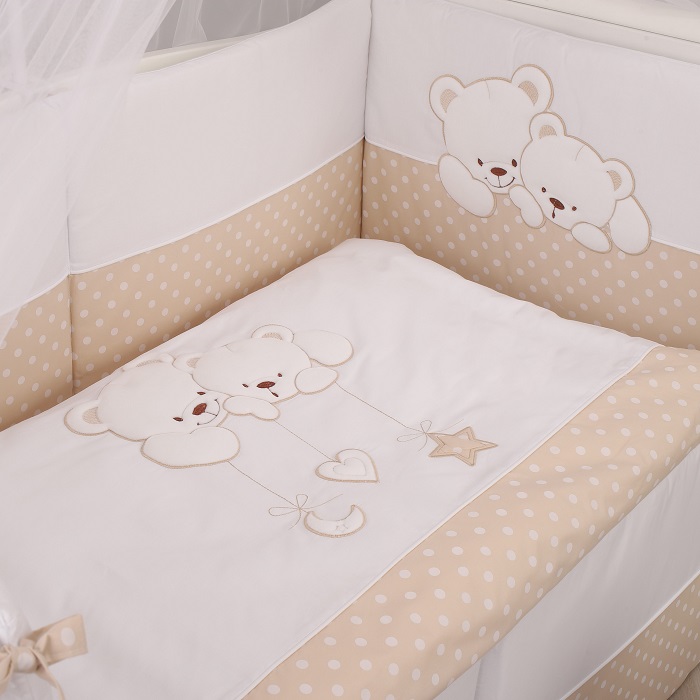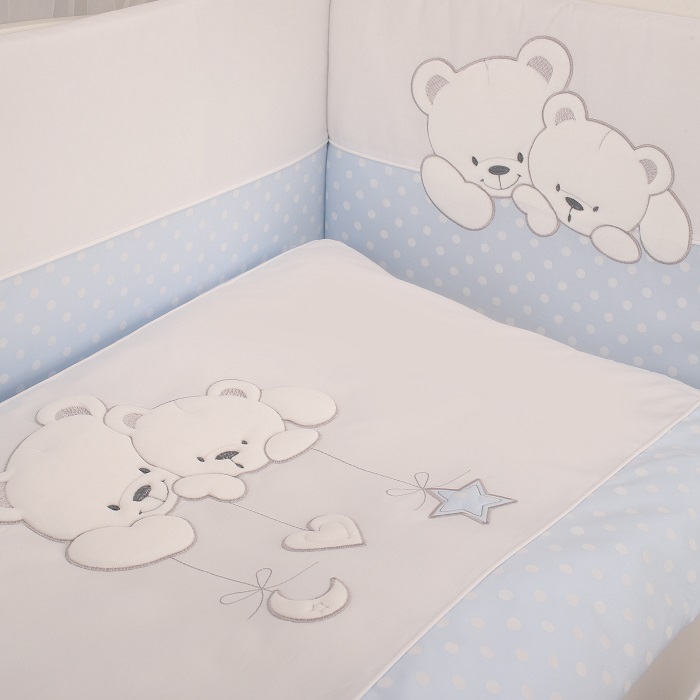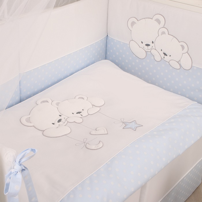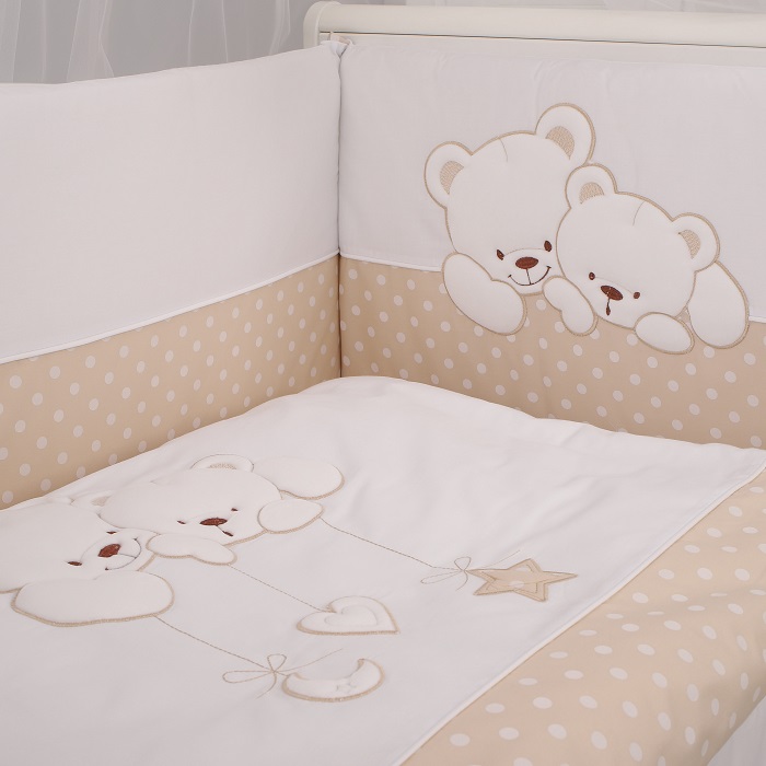 Комплект в кроватку Lepre Sweet Bears (6 предметов) - нежный, экологически чистый комплект из 100%-го длинноворсового хлопка, обработанного с учётом жестких европейский норм в Польше. Изготовлен по стандартам CONFIDENCE IN TEXTILES, имеет европейский сертификат. Нежный расцветки, красивая аппликация и высокое качество обязательно понравятся малышу и его родителям.