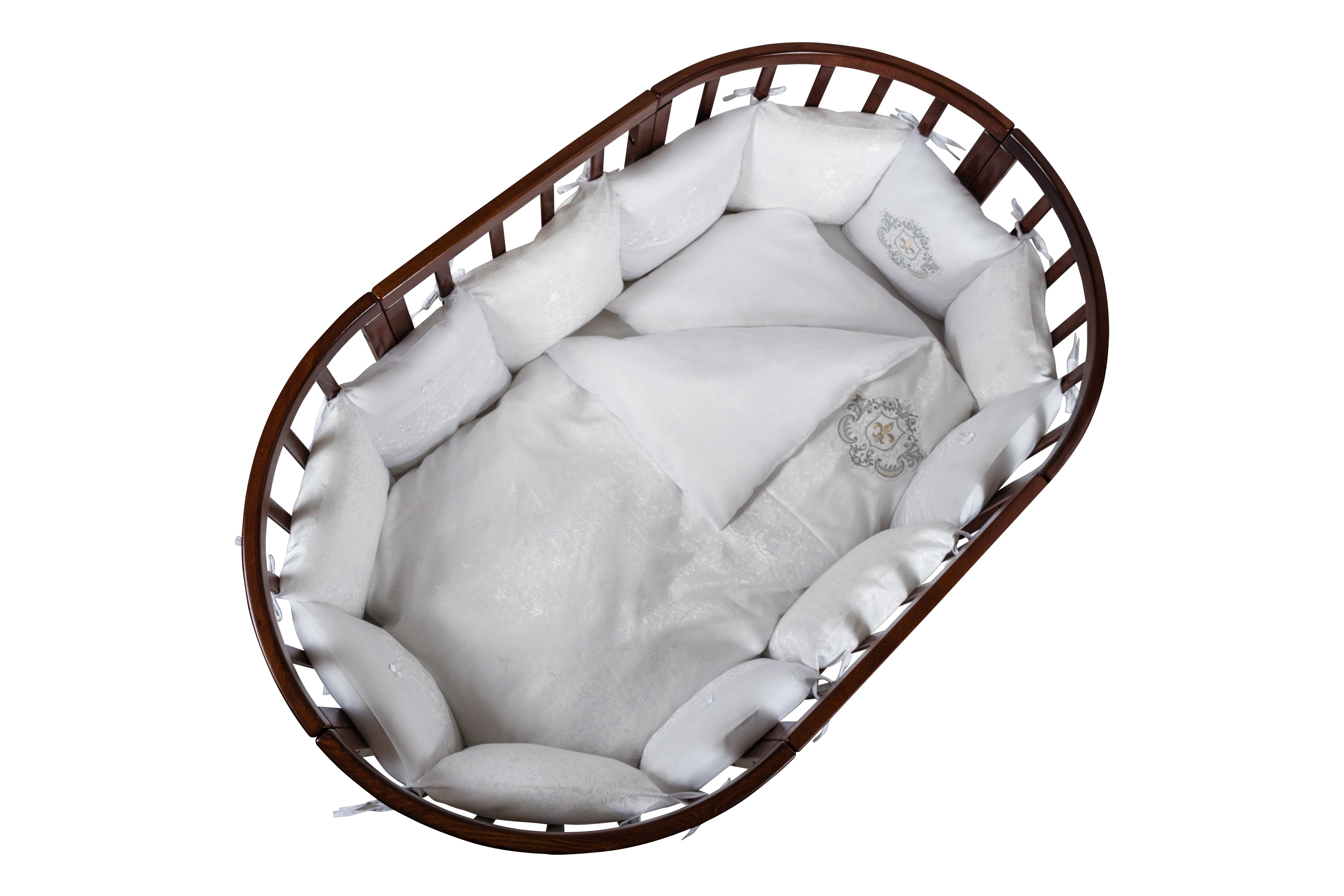 - Комплект состоит из 6 предметов, бампер из 12 подушек.