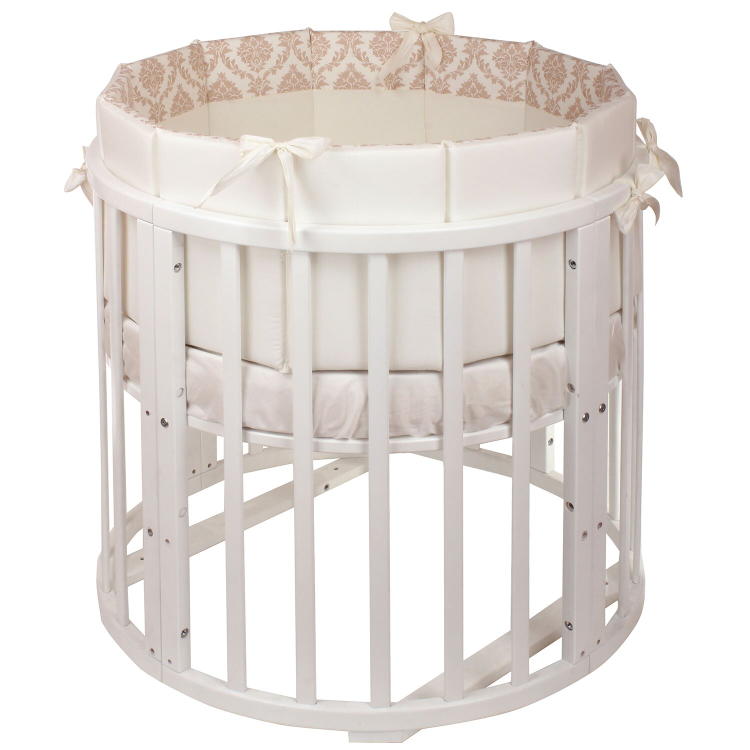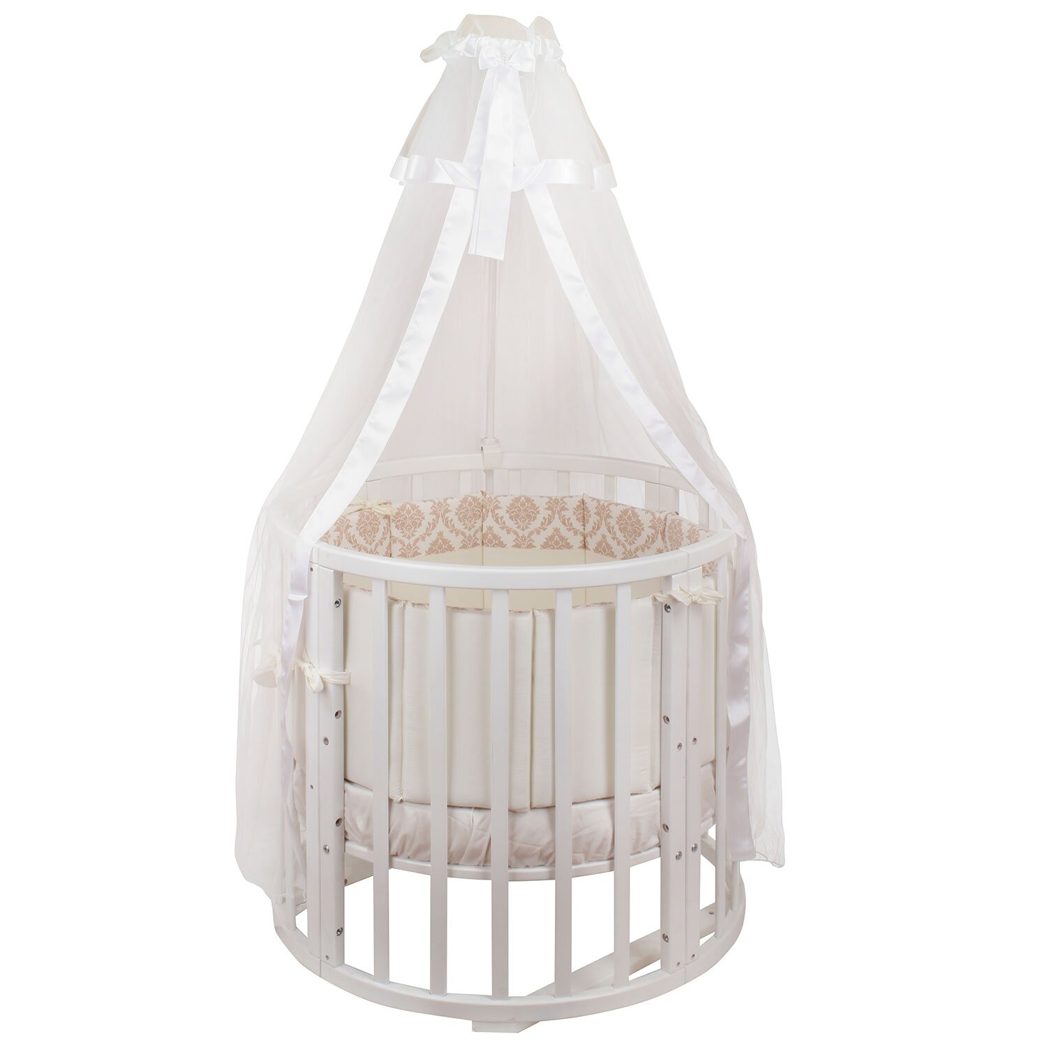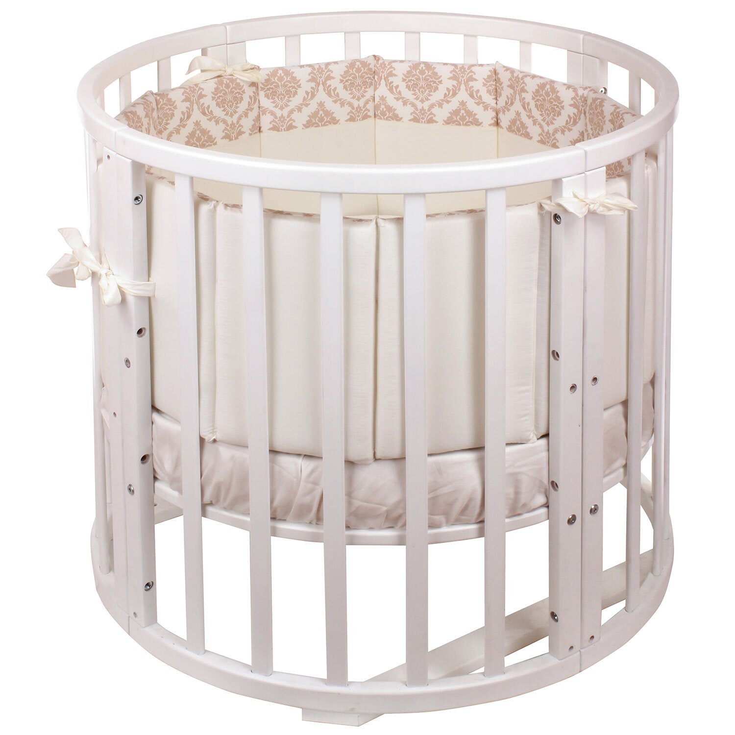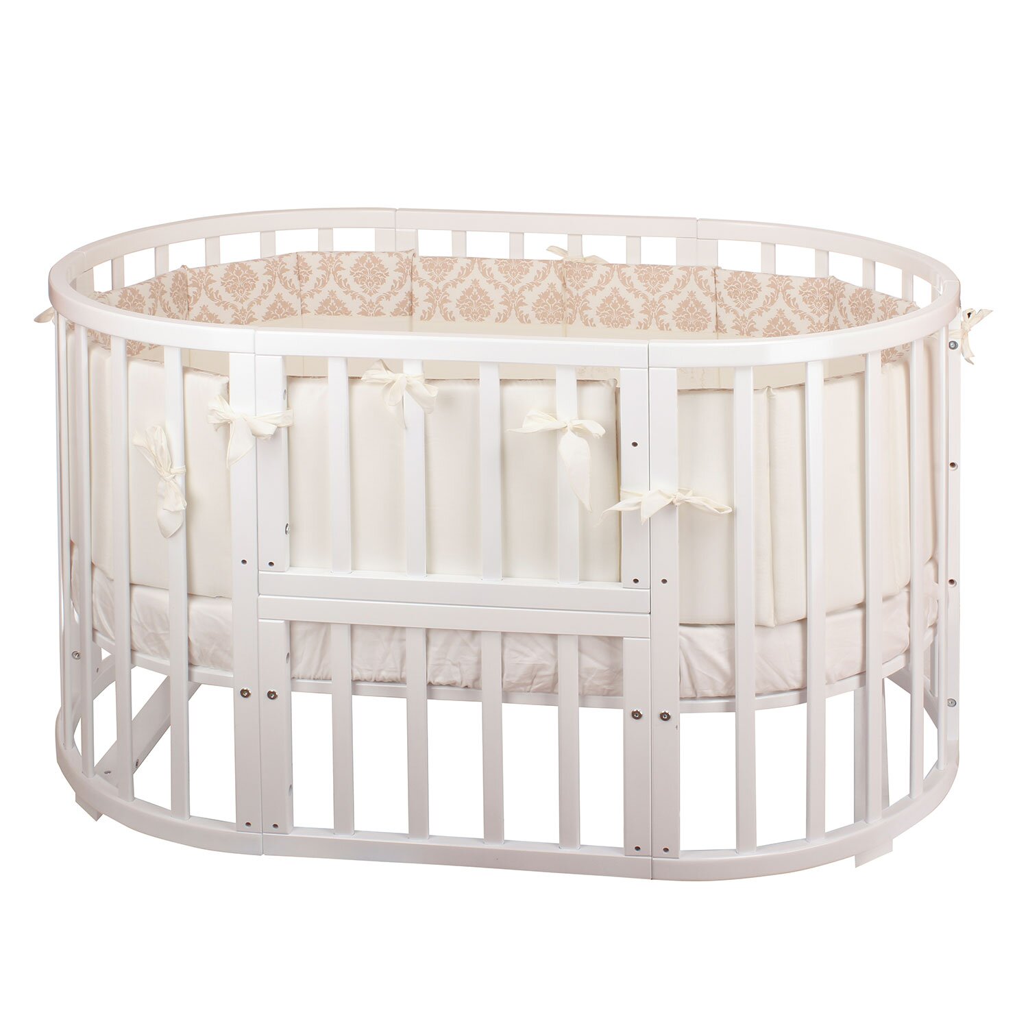 Комплект в кроватку NUOVITA Due Orsi (нуовита) - красивый комплект с очень нежным узором. Состоит набор из 4 бортиков, которые удобно крепятся на круглую или овальную кроватку с помощью ленточек. Такие бортики создадут в кроватке уютное и безопасное гнездышко для новорожденного малыша. Так же в комплекте подушка и 2 одеяла, внутри которых бамбук и гипоаллергенный холлкон, очень мягкий и приятный материал. Для удобства мамы все простыни на резинках, что поможет быстро и легко одевать их на матрас.