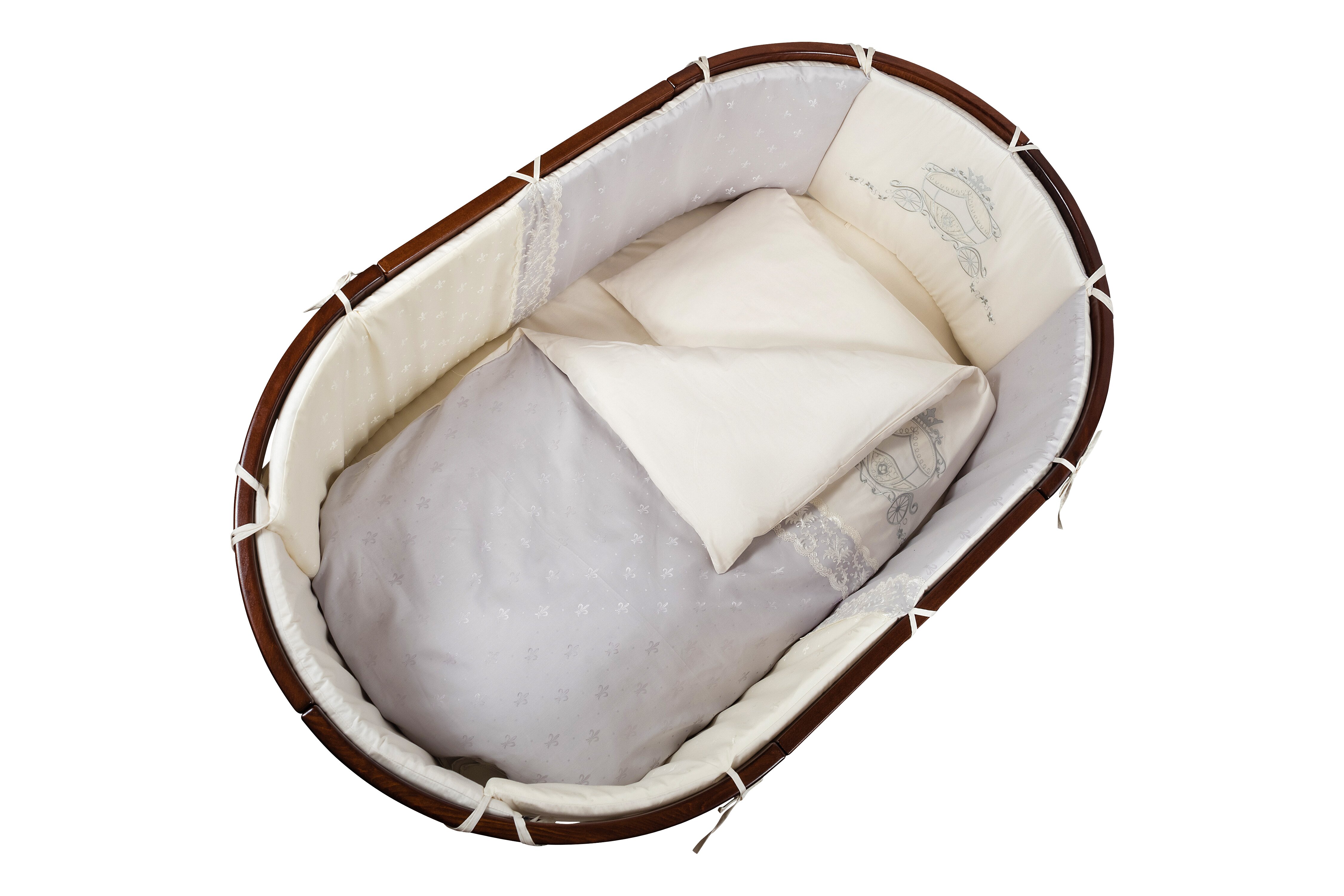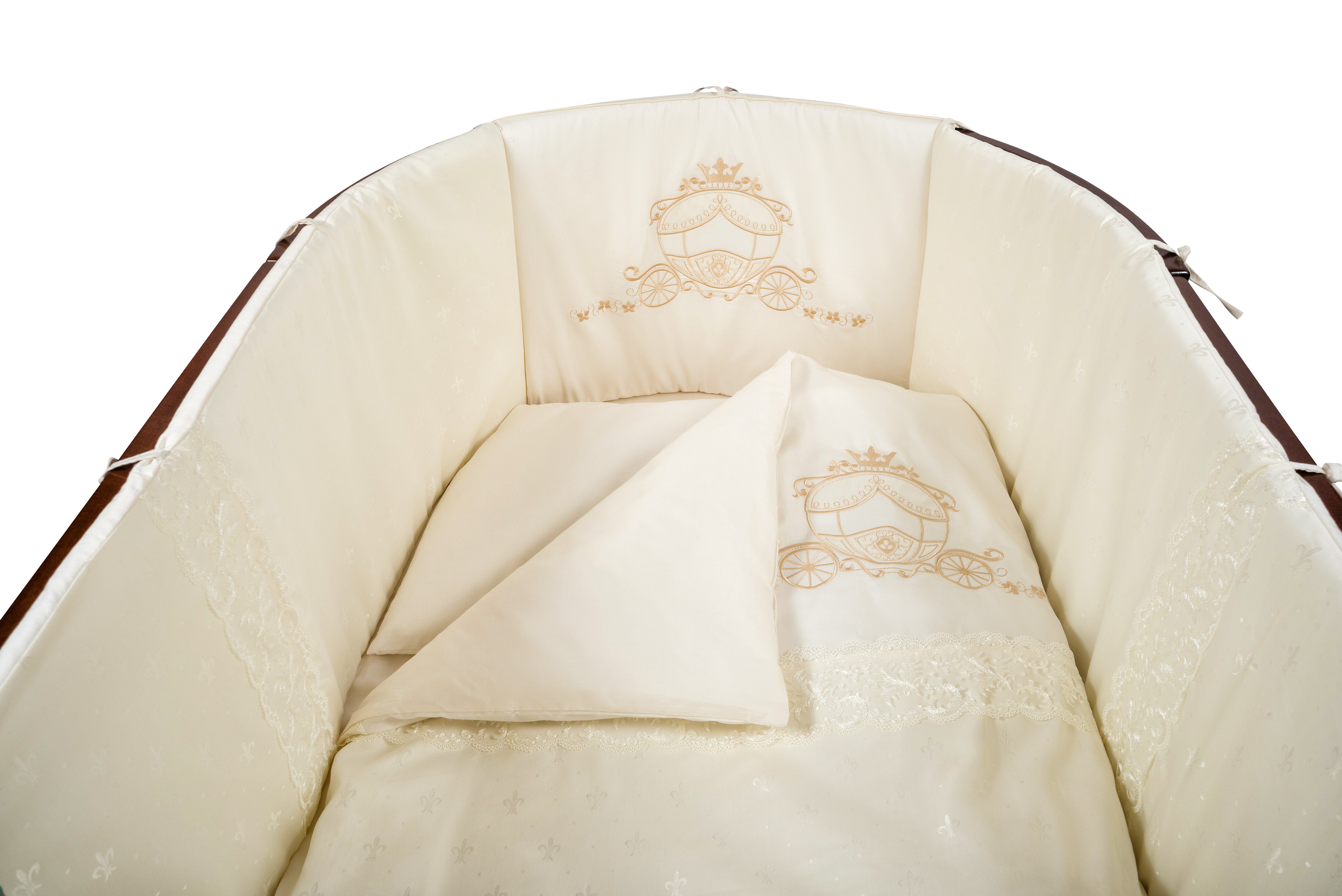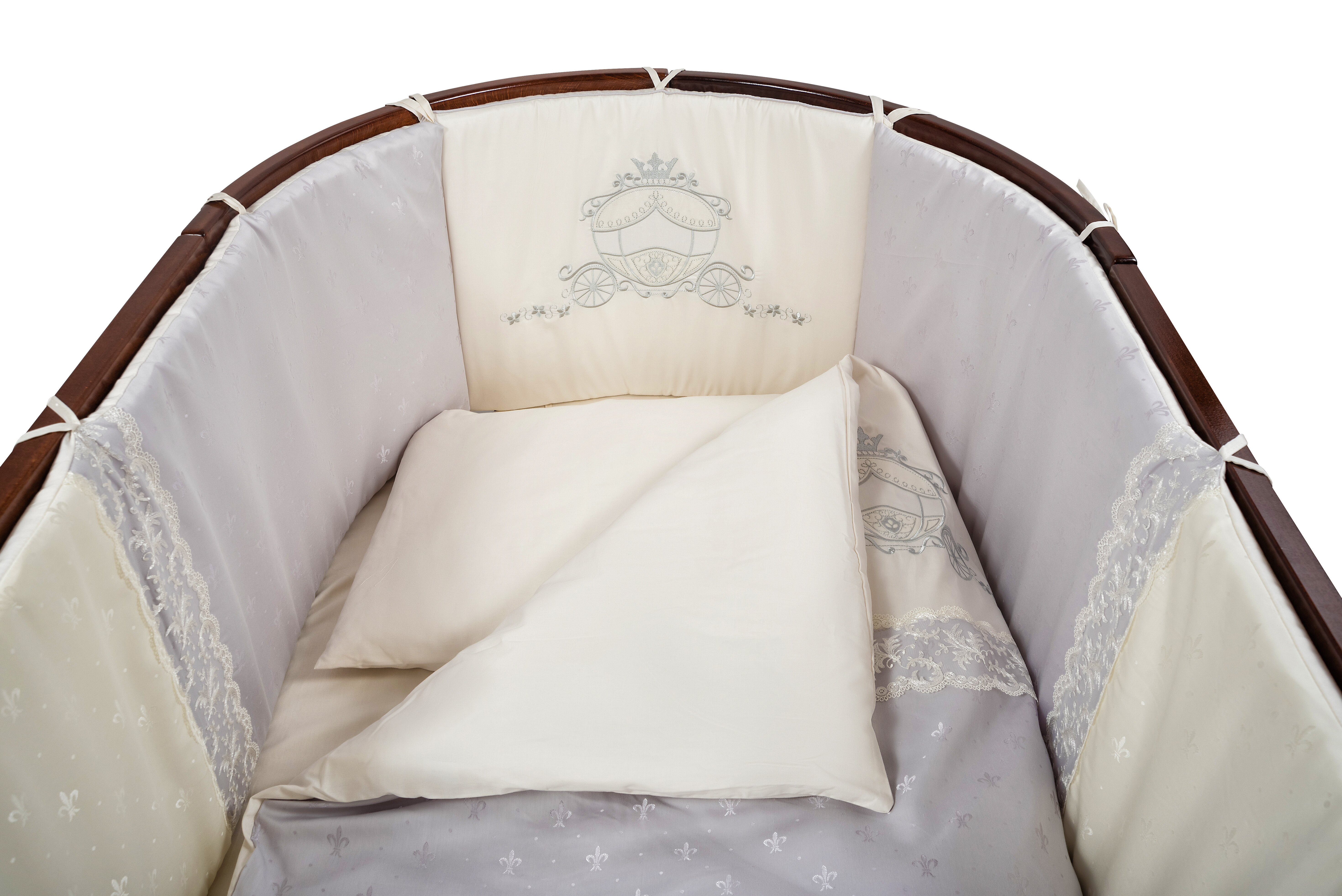 Комплект в кроватку Nuovita Prestigio Pizzo (нуовита престижио пиззо) - нежный набор с бортиками и постельным бельем для круглой и овальной кровати. В данной модели очень красиво сочетаются разные фактурные ткани, цвета и вышивка на бортиках и одеяле. Такой комплект, несомненно, украсит ложе малыша, сделает его мягким и приятным на ощупь.
