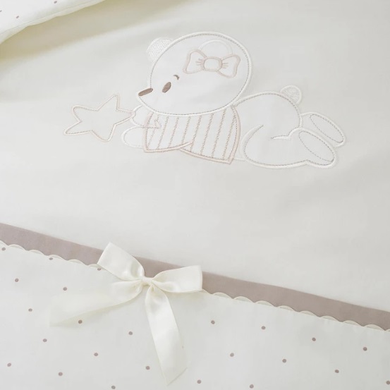 Нежные спокойные расцветки убаюкают ребенка, а приятная качественная ткань создаст необходимый комфорт и уютную атмосферу для сна. Воздушные шелковые ленты и милая аппликация из натурального шелка будут развивать тактильные ощущения ребенка, а так же завершат изящную композицию в кроватке.