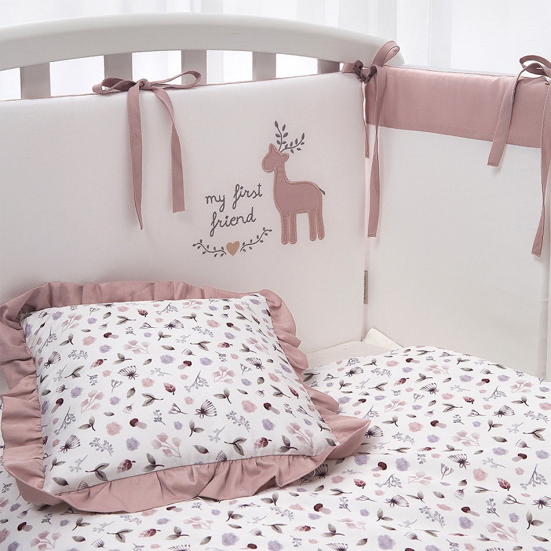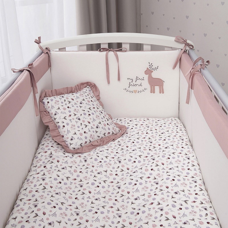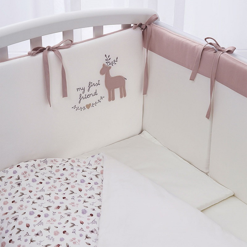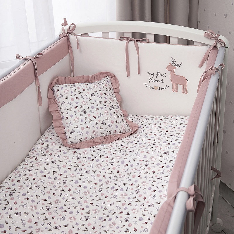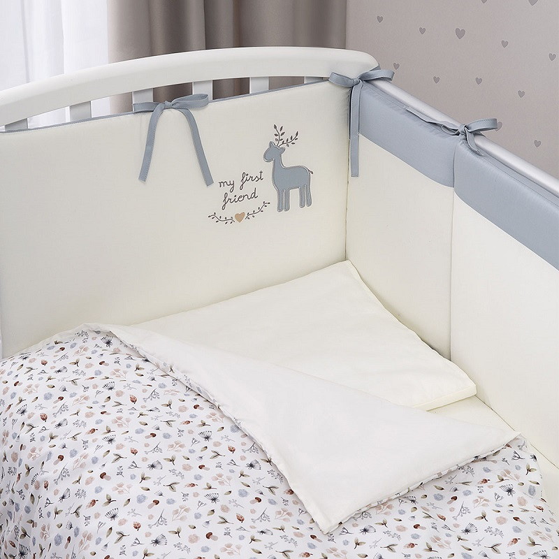 - Бортики из 4 частей со съемным чехлом 38х360 см (по всему периметру кроватки)