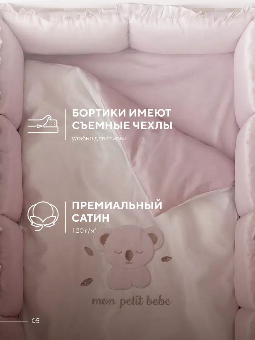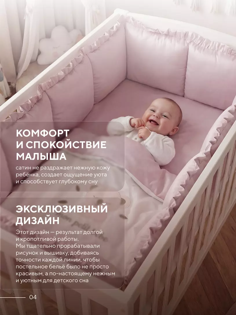 - комплект абсолютно экологичен и безопасен для крохи. Выполнен из 100% сатина премиум-класса.