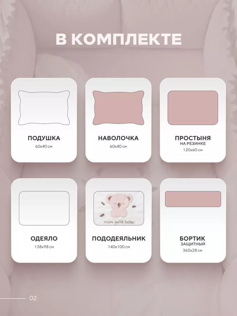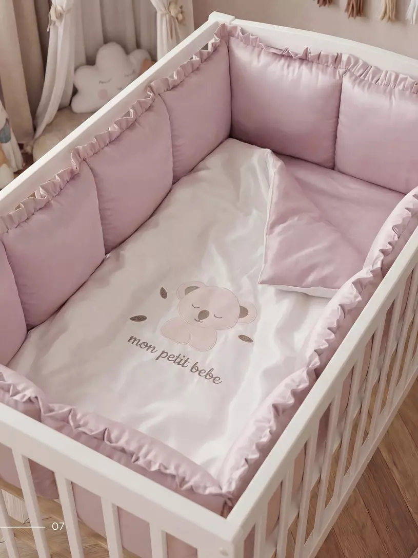 - бортики разработаны таким образом, чтобы подходить для большинства моделей детских кроваток. Наполнитель полностью гипоаллергенен. Также чехлы бортиков съемные на молнии, что значительно облегчает уход за ними.