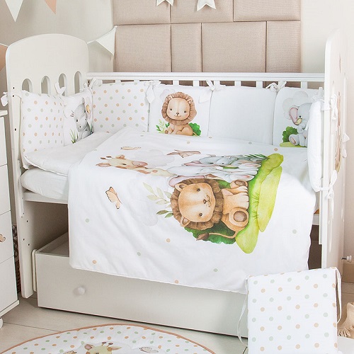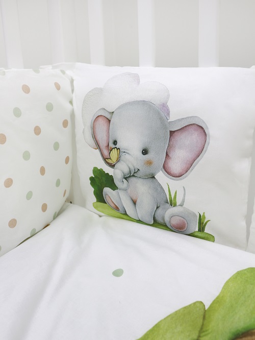 - комплект абсолютно экологичен и безопасен для крохи. Выполнен из 100% хлопка премиум класса. Наполнитель бортиков, подушки, одеяла - текстон, волюметрик.