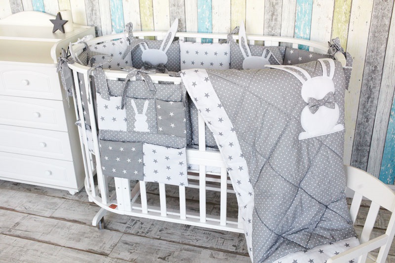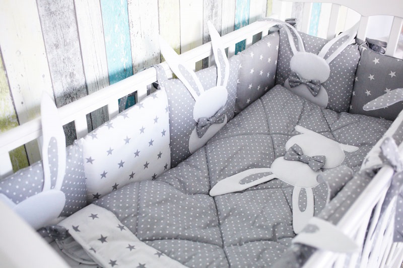 - К кроватке бортики крепятся на завязки, очень удобно и аккуратно