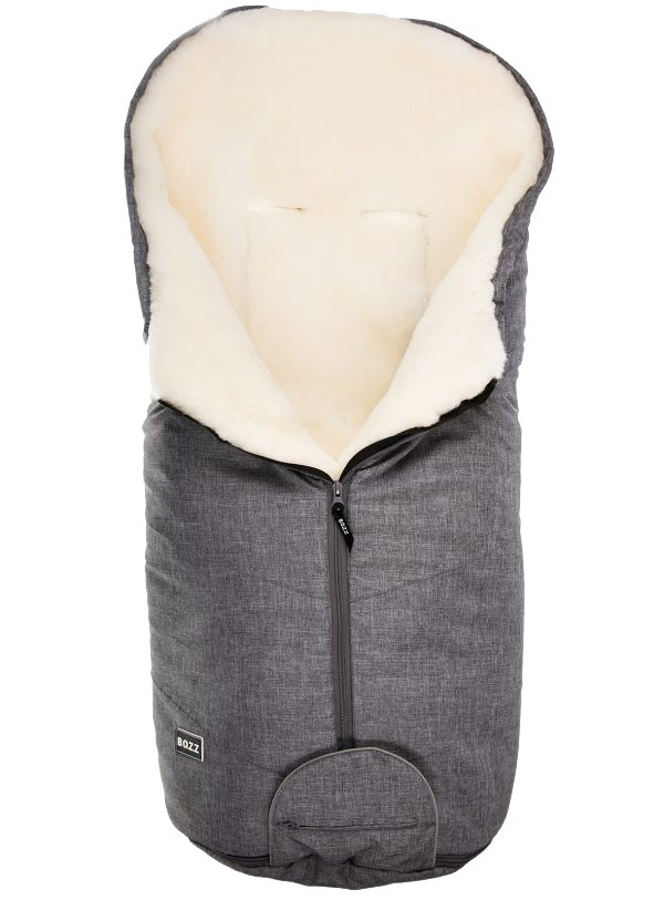 BOOZ конверт из овчины подходит для использования с рождения в коляске-люльке. Он также может быть закреплен на прогулочной коляске.