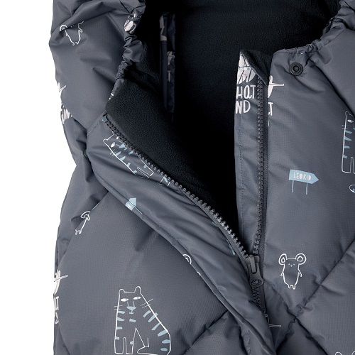- Фурнитура: Пластиковые молнии, пластиковые кнопки, липучки, утягивающий резиновый шнурок, пластиковый стопор.