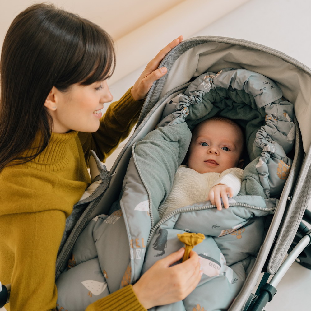 - В зоне ног внутри аксессуара имеется защитная ткань, поэтому малыша можно посадить в конверт прямо в обуви, не боясь испачкать подкладку.