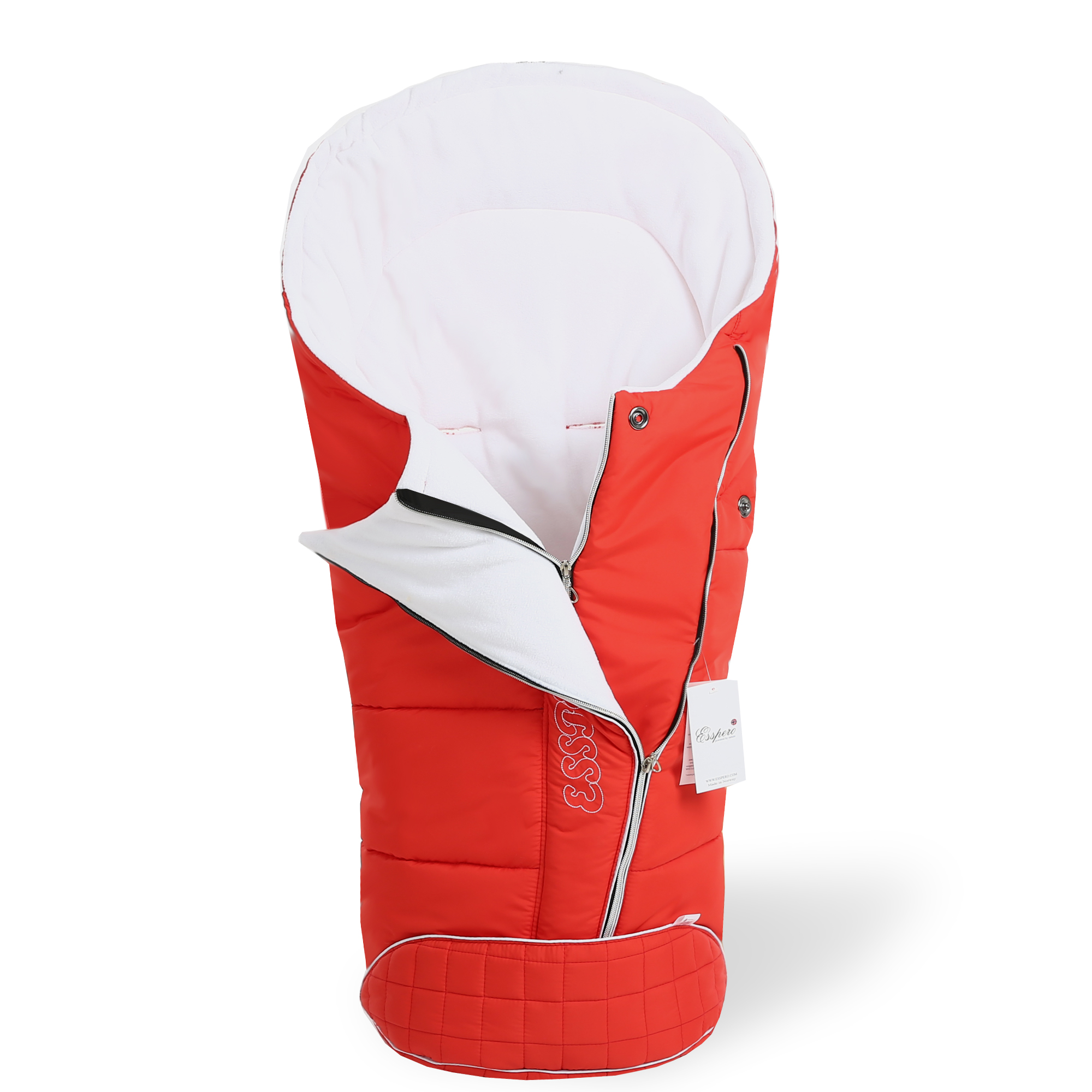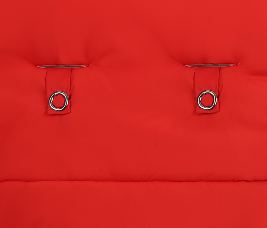 - Для фиксации конверта и ребенка предусмотрены универсальные прорези для ремней безопасности коляски.