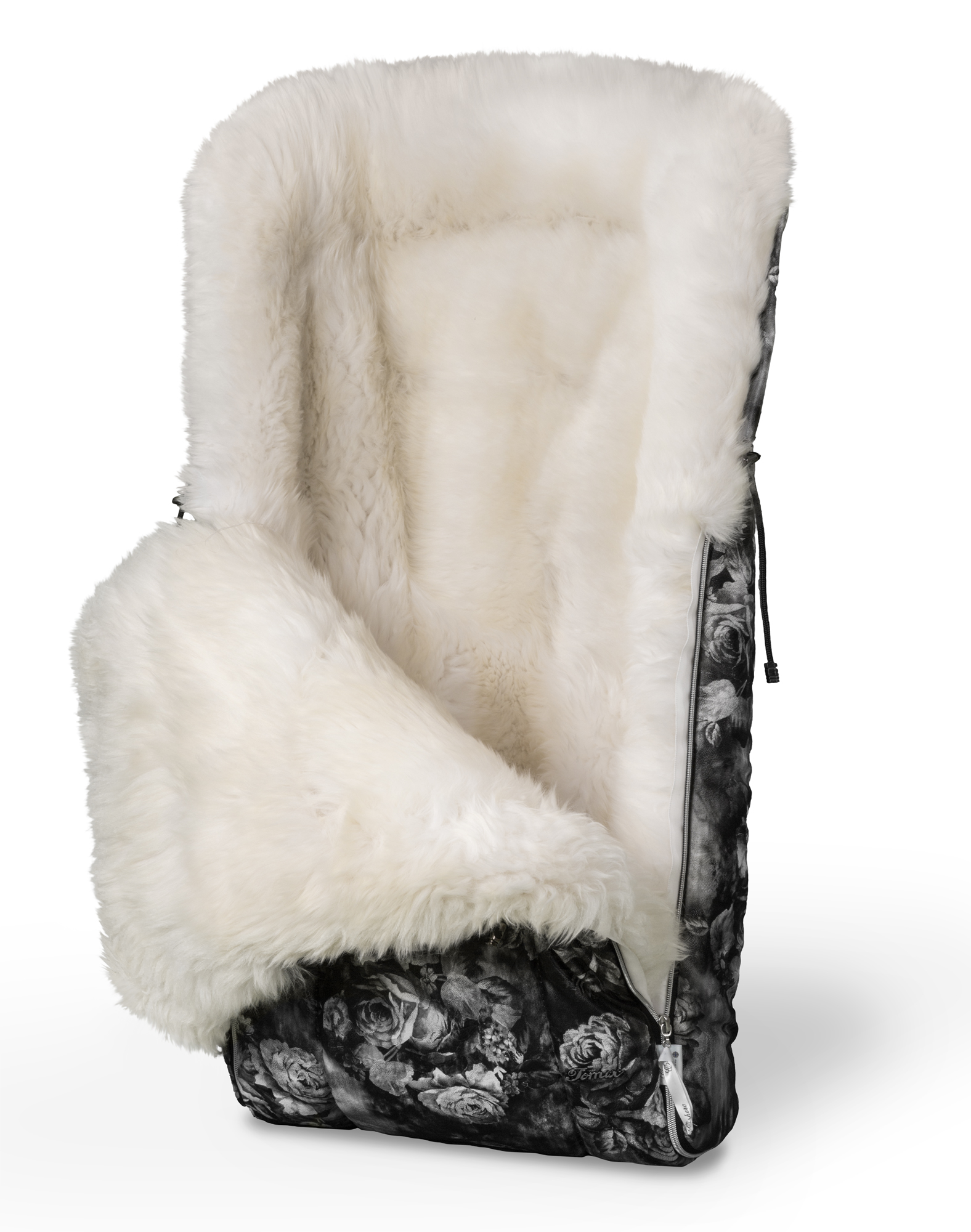 - Внутри конверта 100% натуральный мех исландской овцы, природный утеплитель которые не боится ни мороза, ни ветра.