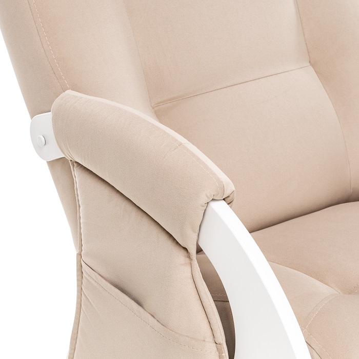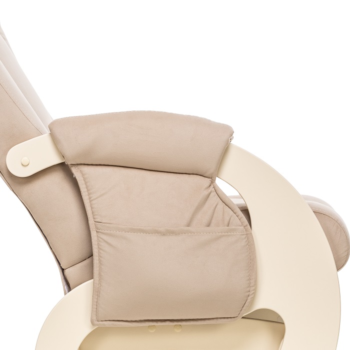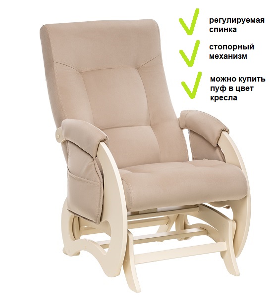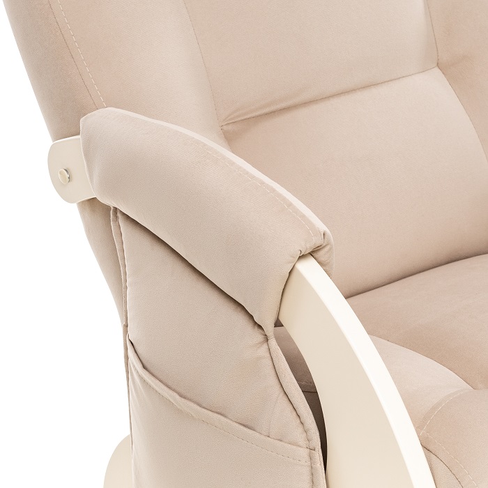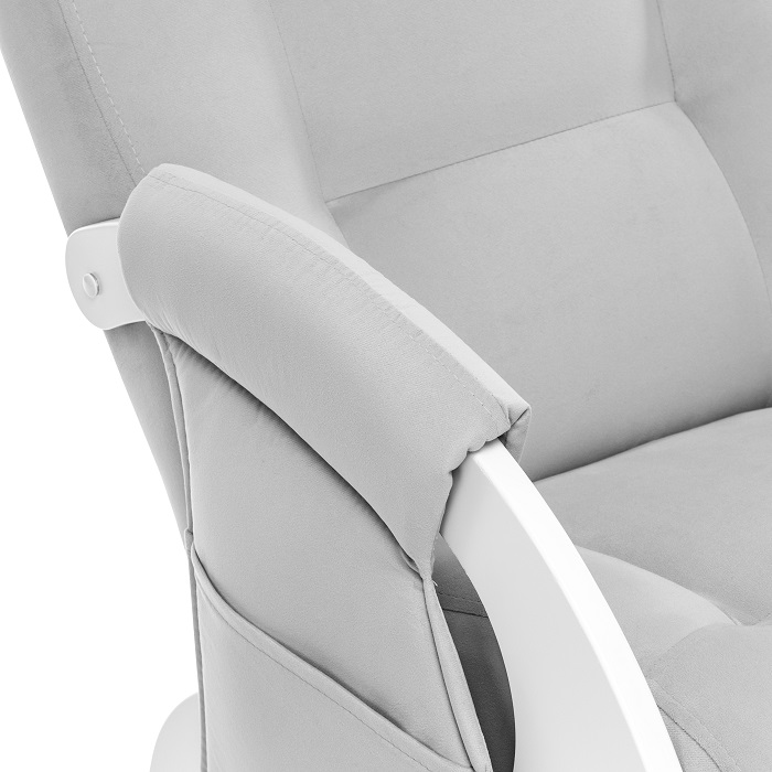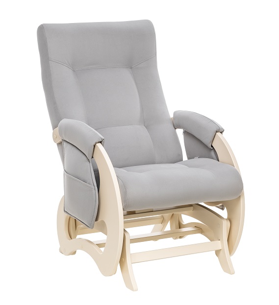 Также, бесшумное кресло-глайдер с пуфом для кормящих и будущих мам Milli Ария представлено с обивкой из эко-кожи.