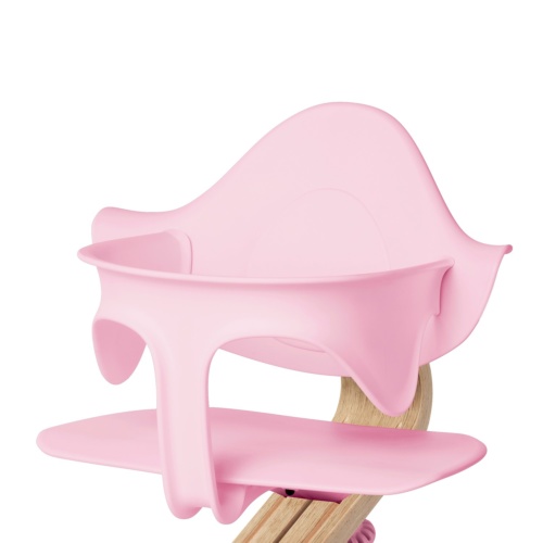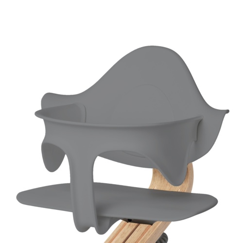 Nomi Mini легко собрать. Фиксатор просто защелкивается сначала под сиденьем, а затем на спинке детского стульчика Nomi.