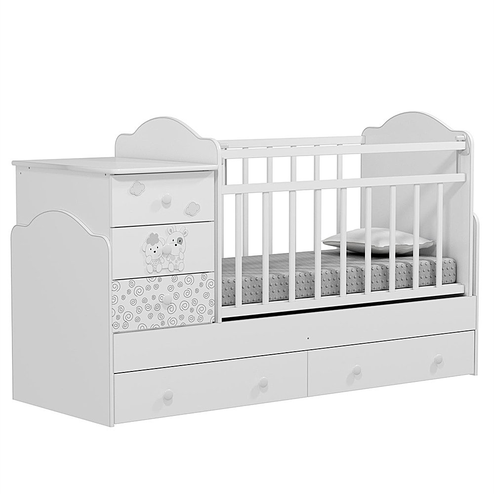 Кровать Indigo FATTORIA UNIVERSAL трансформер (Фаттория универсал) - кровать трансформер, которая поможет надолго организовать удобное и безопасное место для сна ребенка и хранения вещей. Кровать состоит из следующих элементов: классическая кровать 120х60 см для ребенка с рождения до 3-4 лет, кровать подростковая 170х60 см, комод с 3-мя вместительными ящиками и 2 большими ящика под кроватью.