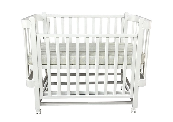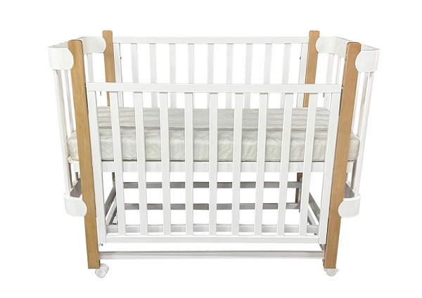 Спальное ложе кроватки Антел Солнышко2 120х60 см. Высоту подматрасника можно регулировать по высоте в 3 положениях, в зависимости от возраста ребенка. Чем старше ребенок, тем ниже необходимо опустить спальное ложе по высоте. Передняя стенка оснащена курком, который позволит быстро поменять высоту переднего бортика или его полностью снять, чтобы использовать кроватку как диванчик.