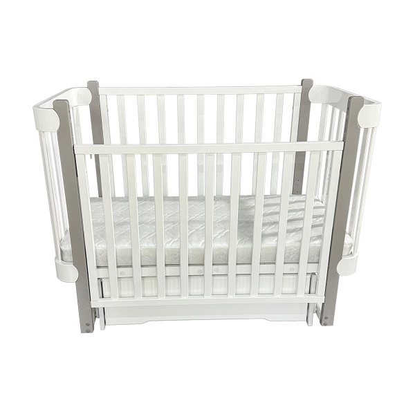 Спальное ложе кроватки Антел Solnyshko с ящиком 120х60 см. Высоту подматрасника можно регулировать по высоте в 4 положениях, в зависимости от возраста ребенка. Чем старше ребенок, тем ниже необходимо опустить спальное ложе по высоте. Передняя стенка оснащена курком, который позволит быстро поменять высоту переднего бортика или его полностью снять, чтобы использовать кроватку как диванчик.