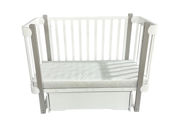 Уникальная особенность кроватки - ящик. Практичное место для хранения детских объемных вещей, спальных принадлежностей. Ящик не занимает дополнительное место, прост в использовании и обязательно пригодится.