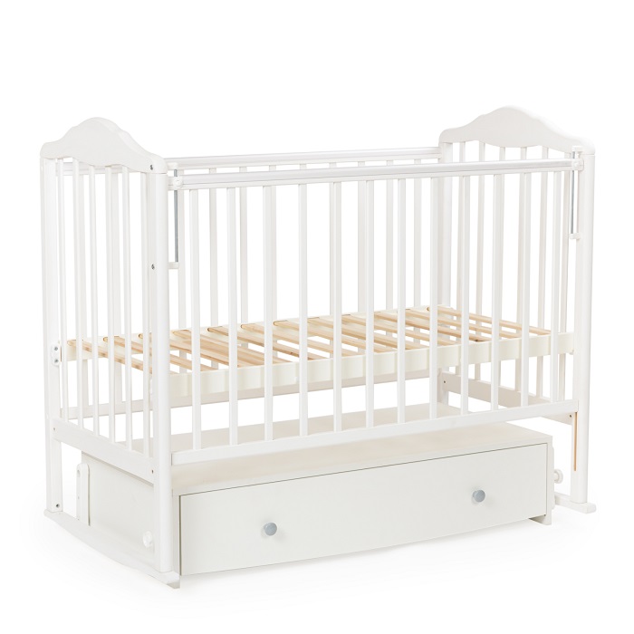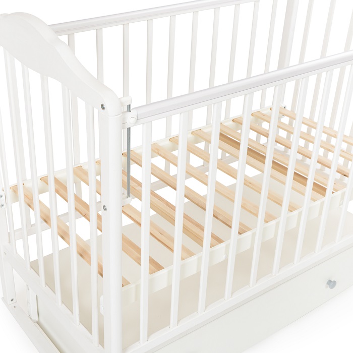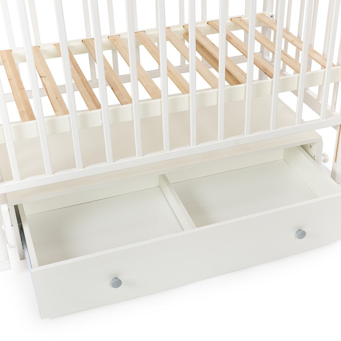 - кроватка имеет удобный и практичный ящик для хранения белья;