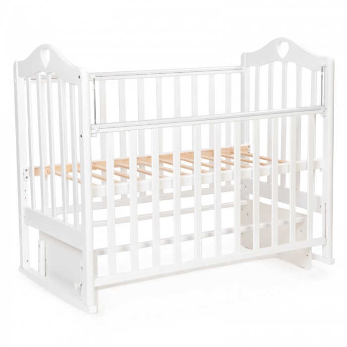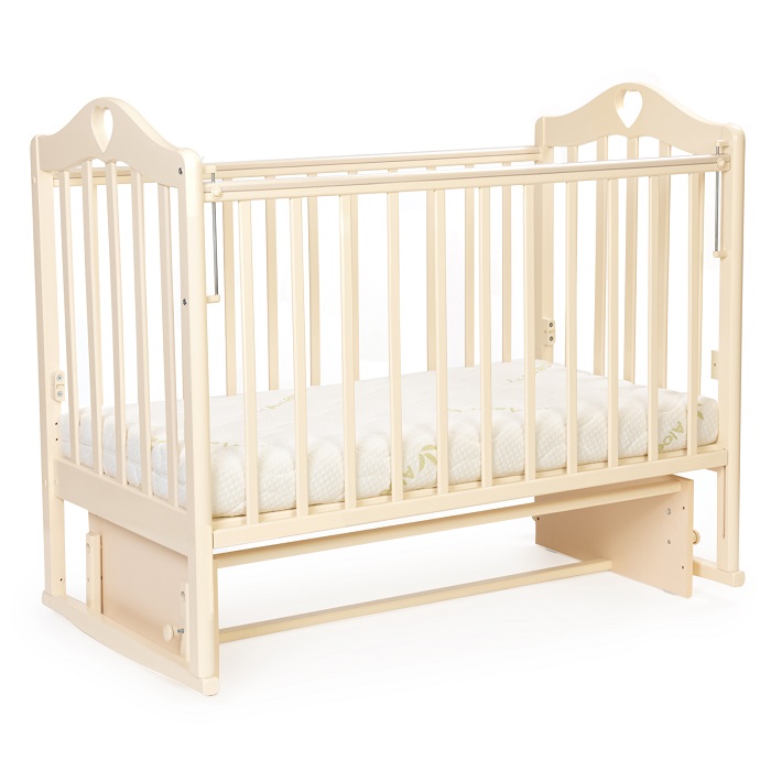 Каркас кроватки выполнен из массива берёзы. Для удобства родителям, боковая стенка кроватки регулируется по высоте.