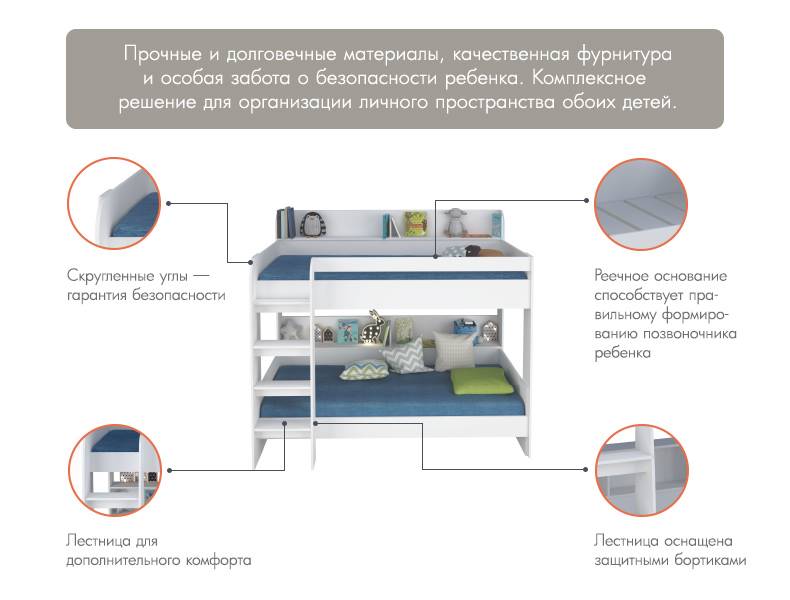 Кровать очень компактная и не занимает много места. Классический дизайн кровати отлично подойдет для любой комнаты, а так же позволит интересно и оригинально украсит кровать на вкус детей.