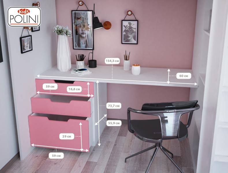 Коллекция мебели Polini kids Simple выполнена из качественных и безопасных материалов: ЛДСП Kronospan Австрия, лакокрасочное покрытие Hesse Lignal (Германия).