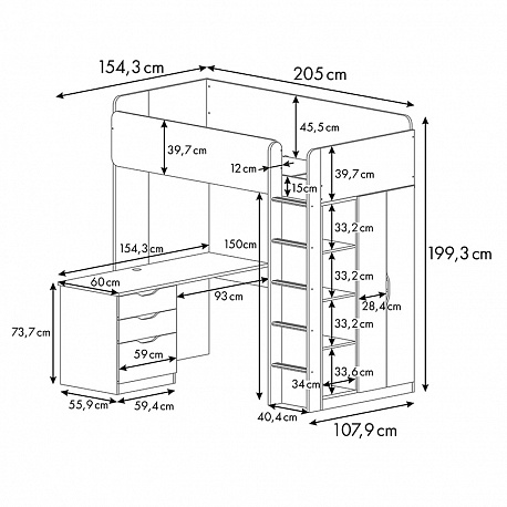 - Лестница: 189,7 х 40,4 х 12 см.