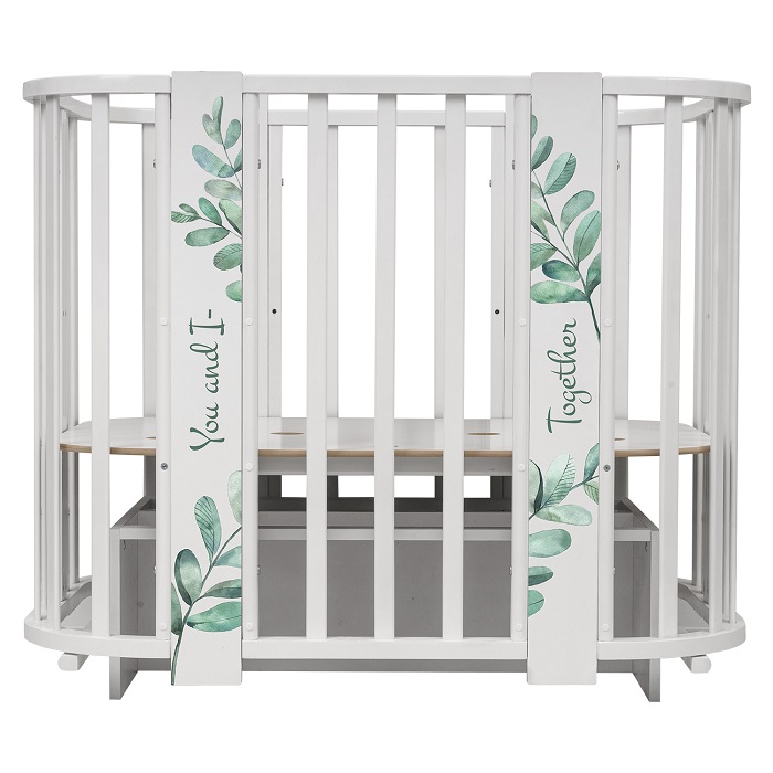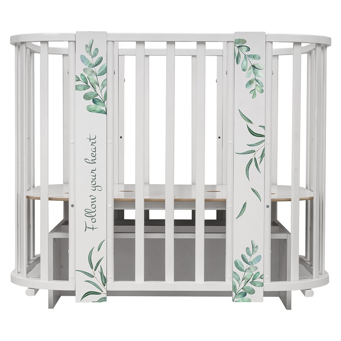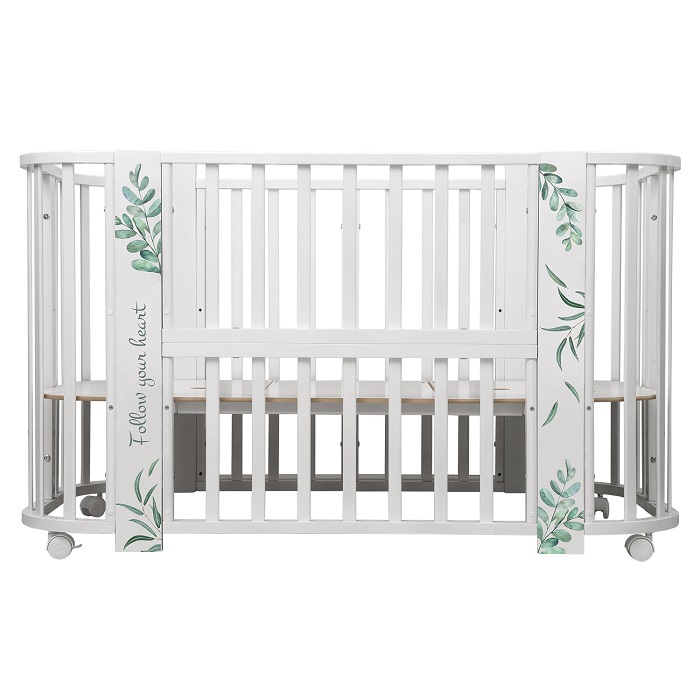 Детская кровать Indigo Green Line 5 в 1 (Индиго грин лайн) - функциональная детская кроватка с маятником в комплекте. Кроватка имеет необычный, стильный дизайн. Каждая кроватка из коллекции украшена веточками, волнами, цветами и интересными надписями. Это дает родителям больше выбора и возможностей.