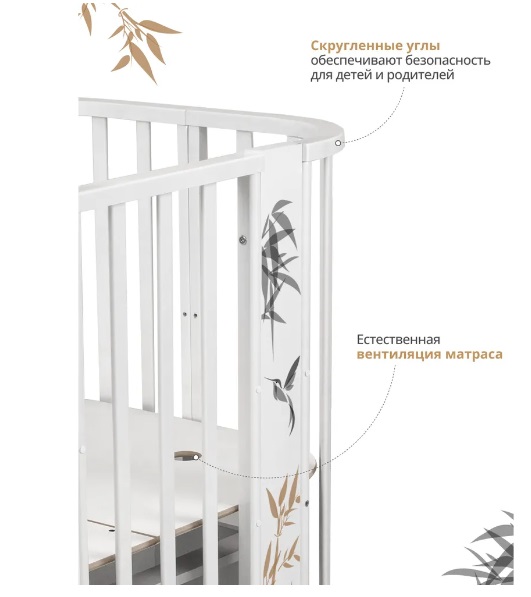 Для новорожденного ребенка предусмотрена уютная колыбелька 70*100 см с возможностью регулировки матрасика по высоте и установкой маятника или колес.