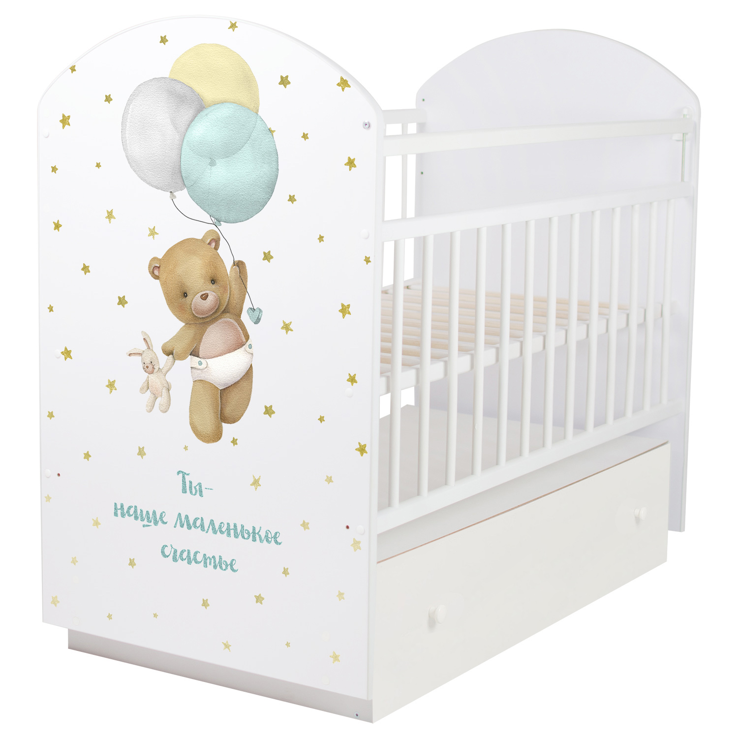 Кровать Indigo My Sleepy (маятник, ящик) (Индиго май слипи) - красивая и удобная кровать для ребенка с рождения до 3 лет. Кровать имеет классический дизайн и стандартное спальное место 120х60 см. Одна стенка украшена милым рисунком.