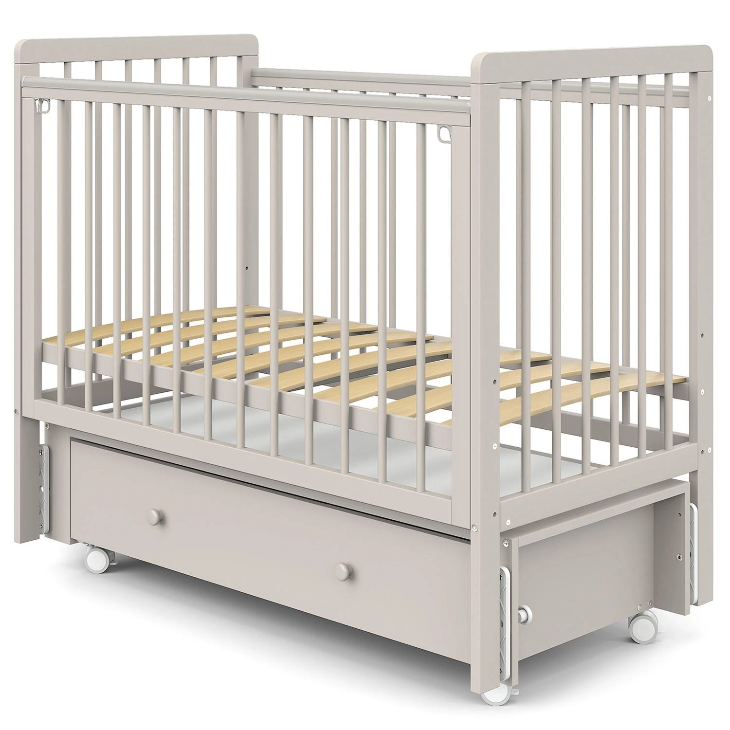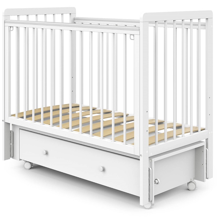 Маятниковый механизм с плавным ходом и возможностью фиксации поможет ребенку уснуть, создает ощущения уюта и безопасности. Реечное дно и боковины поддерживают оптимальную вентиляцию и создают комфортный микроклимат для сна. Защитные накладки «Антигрыз» оберегают ребёнка в период прорезывания зубов.
