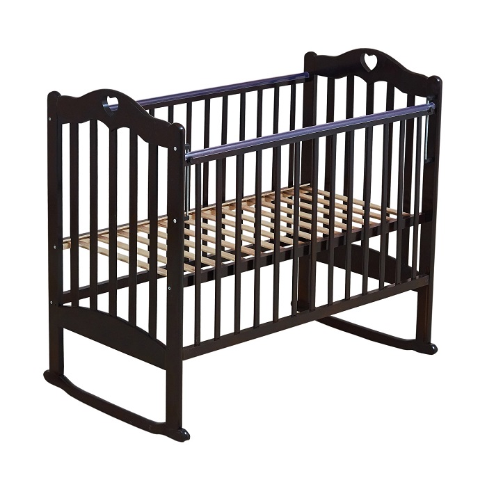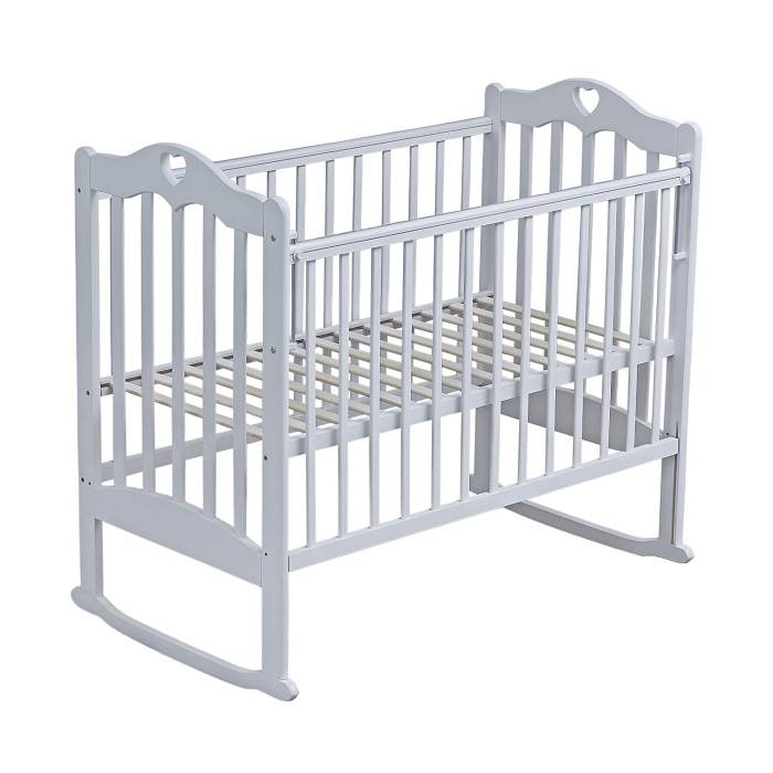 Детская кровать Мой малыш Barney 5 (колесо-качалка) - красивая кровать с сердечком предназначенная для ребенка с 0 до 3 лет. Кроватка оснащена полозьями для убаюкивания малыша и регулируемым спальным ложем. Когда малыш подрастет и в качалке не будет необходимости, на качалку устанавливаются колеса со стопорами.