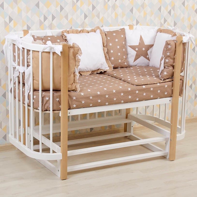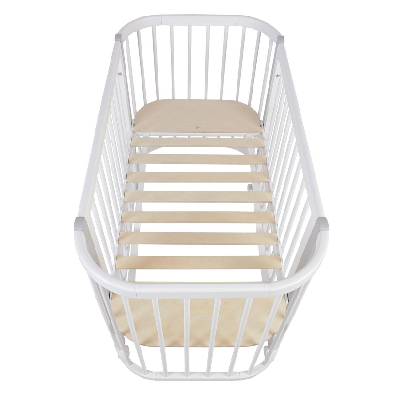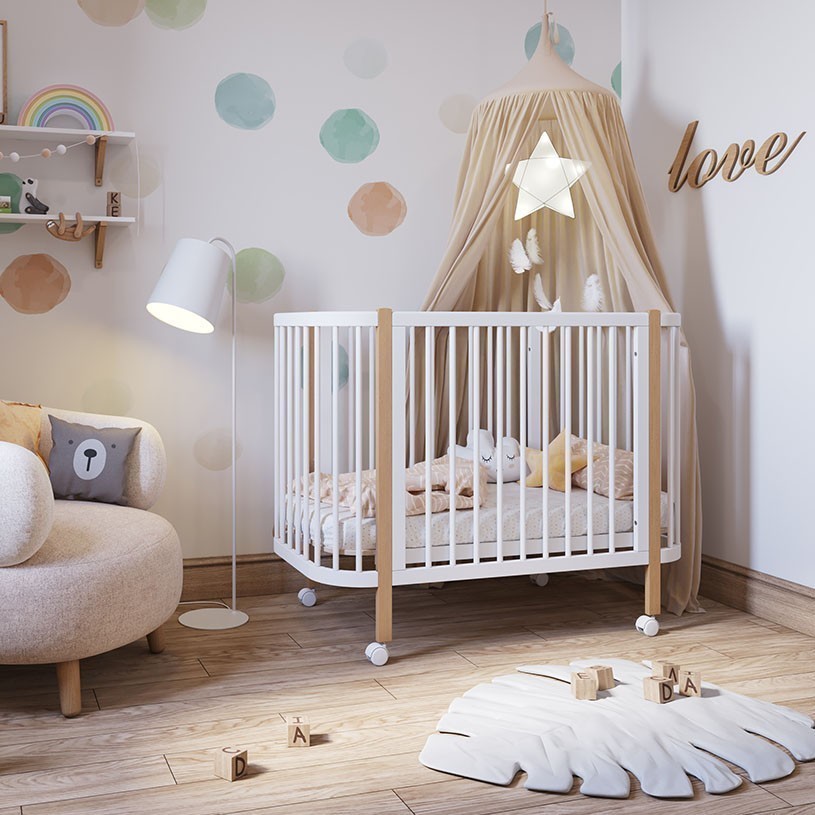 Для спокойных ночей кроватку можно трансформировать в приставную модель, сняв передний бортик кроватки и закрепив рядом с родительской кроватью. Тогда кровать будет стоять рядом со взрослой кроватью и маме не придется ночью вставать, проверяя ребенка, а малыш, чувствуя присутствие родителей, будет спать спокойнее.