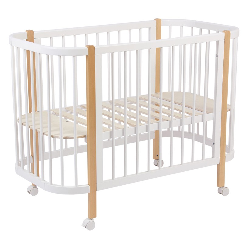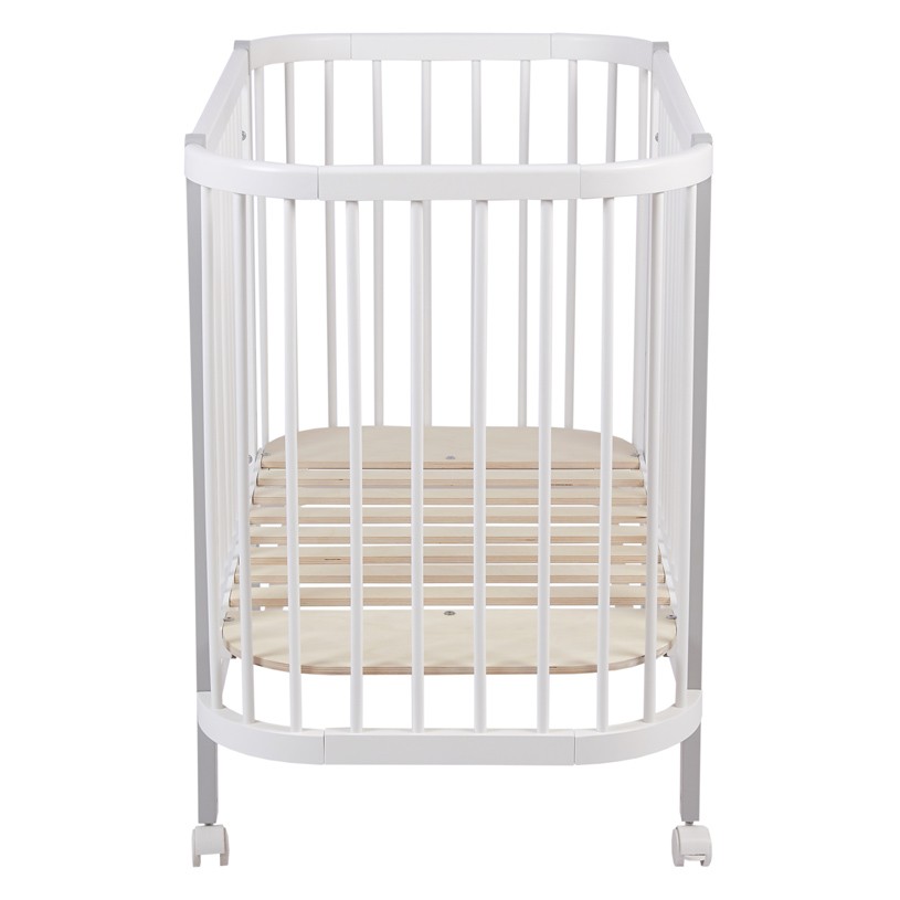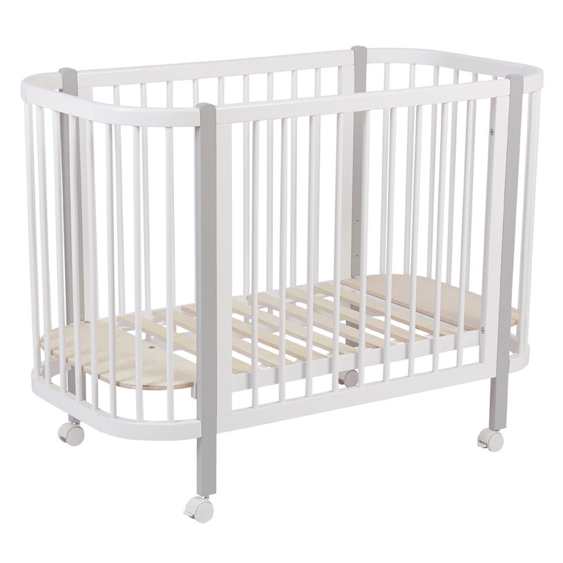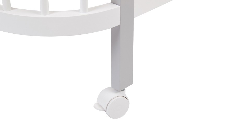 Благодаря наличию в комплекте колёсиков, два из которых идут со стопорами, кроватка является мобильной, и её можно бесшумно перемещать в любое удобное место без особых усилий. При необходимости колеса можно легко снять.