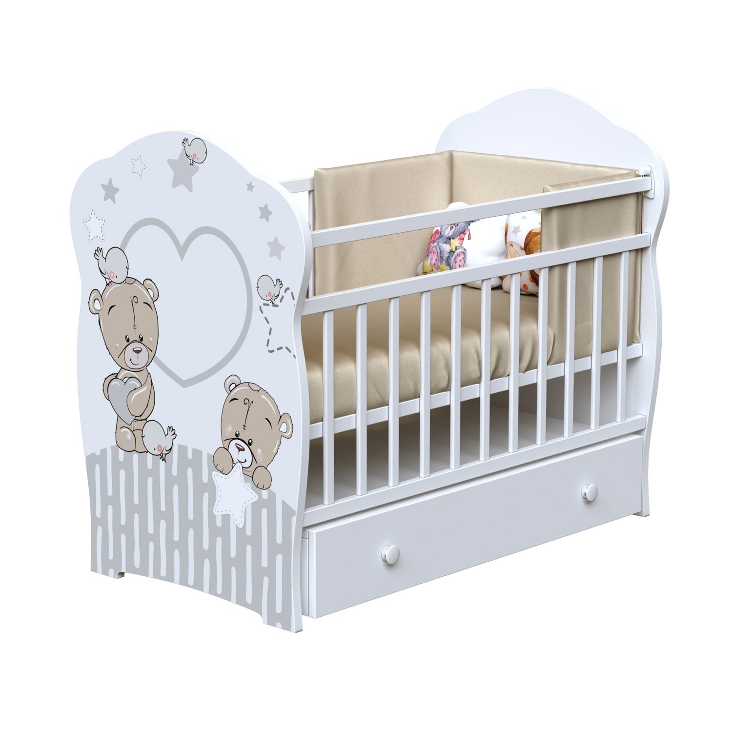 Кровать детская ВДК FOREVER FRIENDS (маятник-ящик) (ВДК Вечные друзья) - функциональная кроватка со всеми необходимыми регулировками для новорожденного ребенка. У модели регулируется дно под матрасиком, опускается передний бортик. Для плавного покачивания из стороны в сторону предусмотрен маятник поперечного качания. Для хранения детских вещей предусмотрен вместительный ящик. При прорезывании зубиков кроватку защитят накладки ПВХ , которые идут в комплекте.