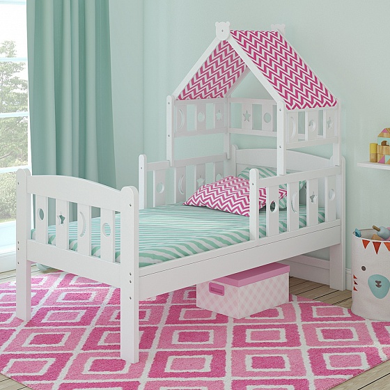Кровать Giovanni DOMMY (джиованни домми) - кровать -мечта для каждого ребенка. Невероятно красивая кроватка сделана как небольшой домик. За счет небольшой, яркой крыши кроватка станет удивительным, волшебным местом для сна и игр. Крыша из ткани легко снимается и стирается. Кроватка специально приподнята от пола на оптимальную высоту, так гораздо интереснее и увлекательнее. Бортики безопасности сделают пребывание ребенка кроватки безопасным и более уютным.