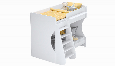 Сглаженные углы мебели защитят ребенка от ушибов и царапин. Высокие бортики по всему периметру предотвращают скатывание ребенка во время сна. Универсальный белый цвет вписывается в комнату любого стиля и подходит как мальчику, так и девочке.