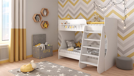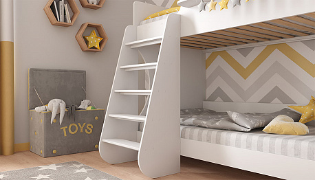 Продуманный дизайн позволяет разместить двоих детей с одинаковым комфортом. Наличие полочки дает возможность дополнить спальный уголок любыми аксессуарами и игрушками. Ребенок самостоятельно может украшать и заполнять полочку у спального места рамками для фотографий, игрушками и всеми необходимыми вещами.