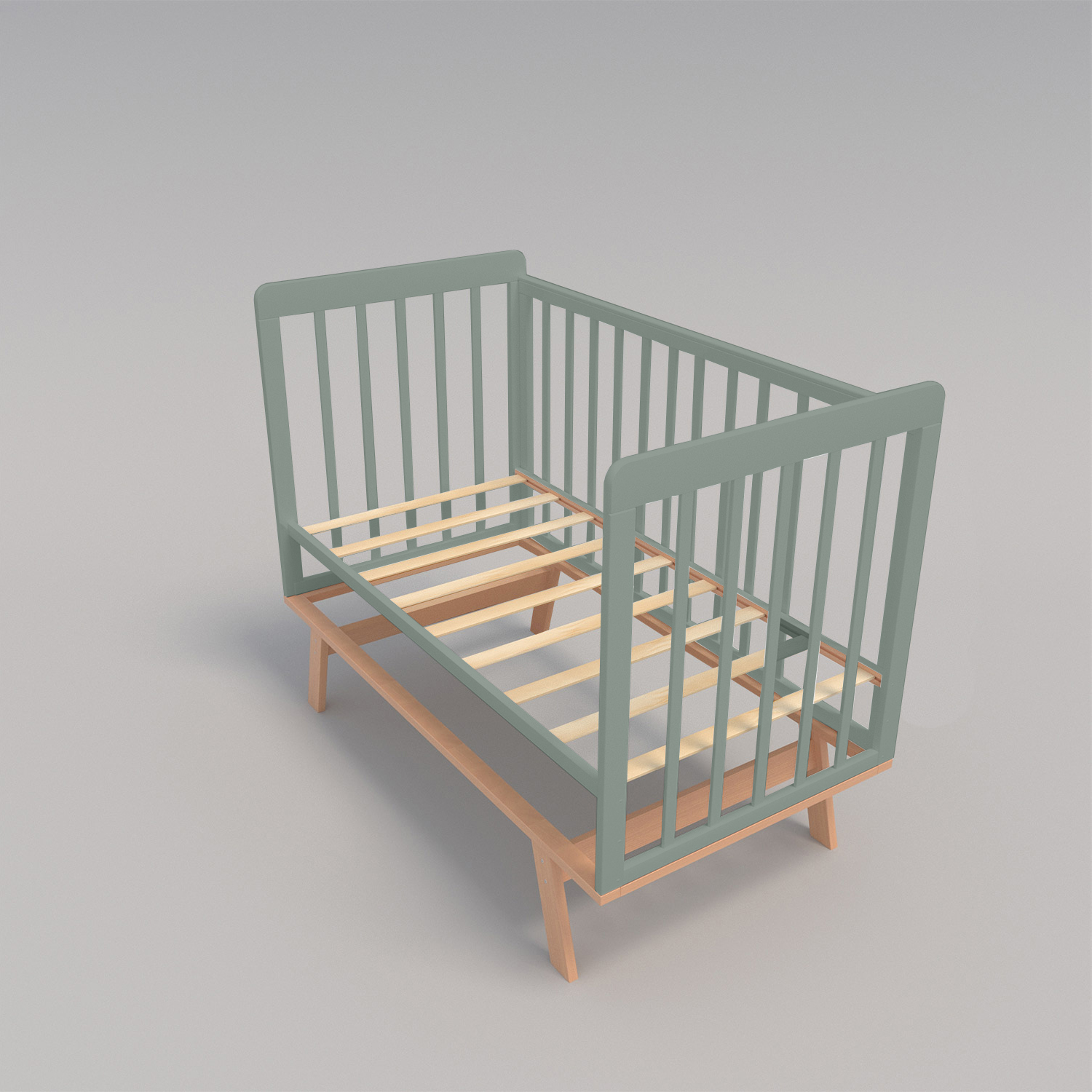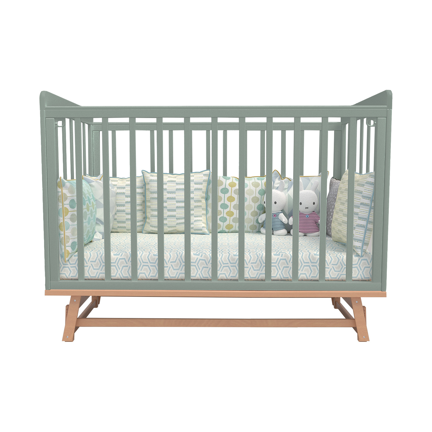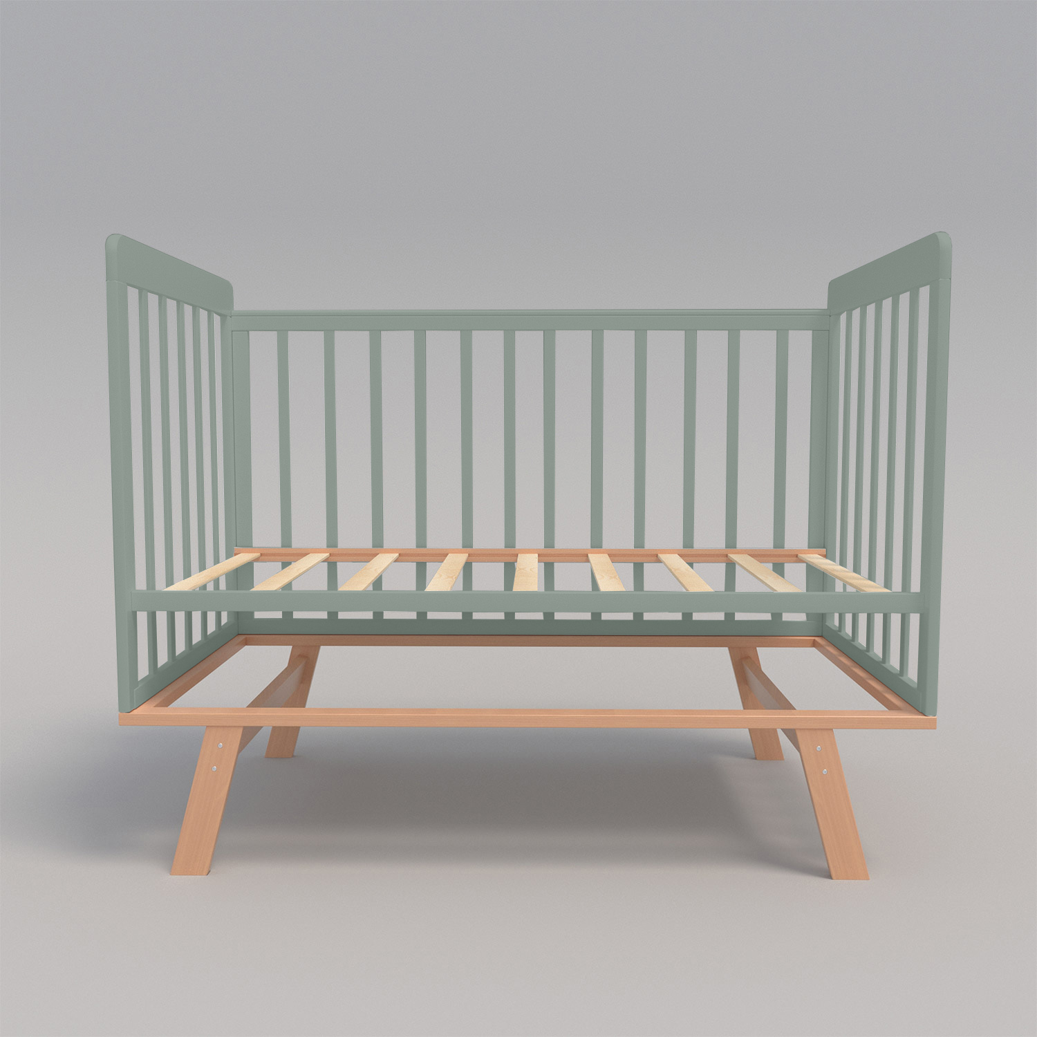 Кроватка не имеет острых углов - все грани сглажены, а между рейками выдержано оптимальное расстояние, чтобы ручки и ножки малыша не застряли во время игр или сна.
