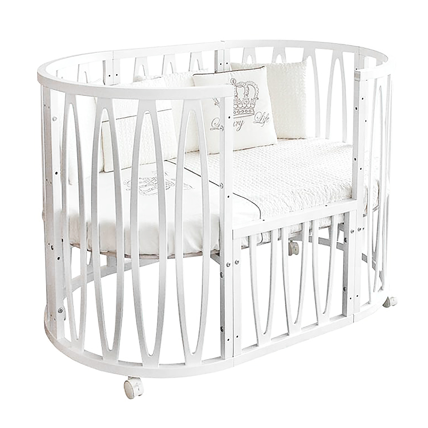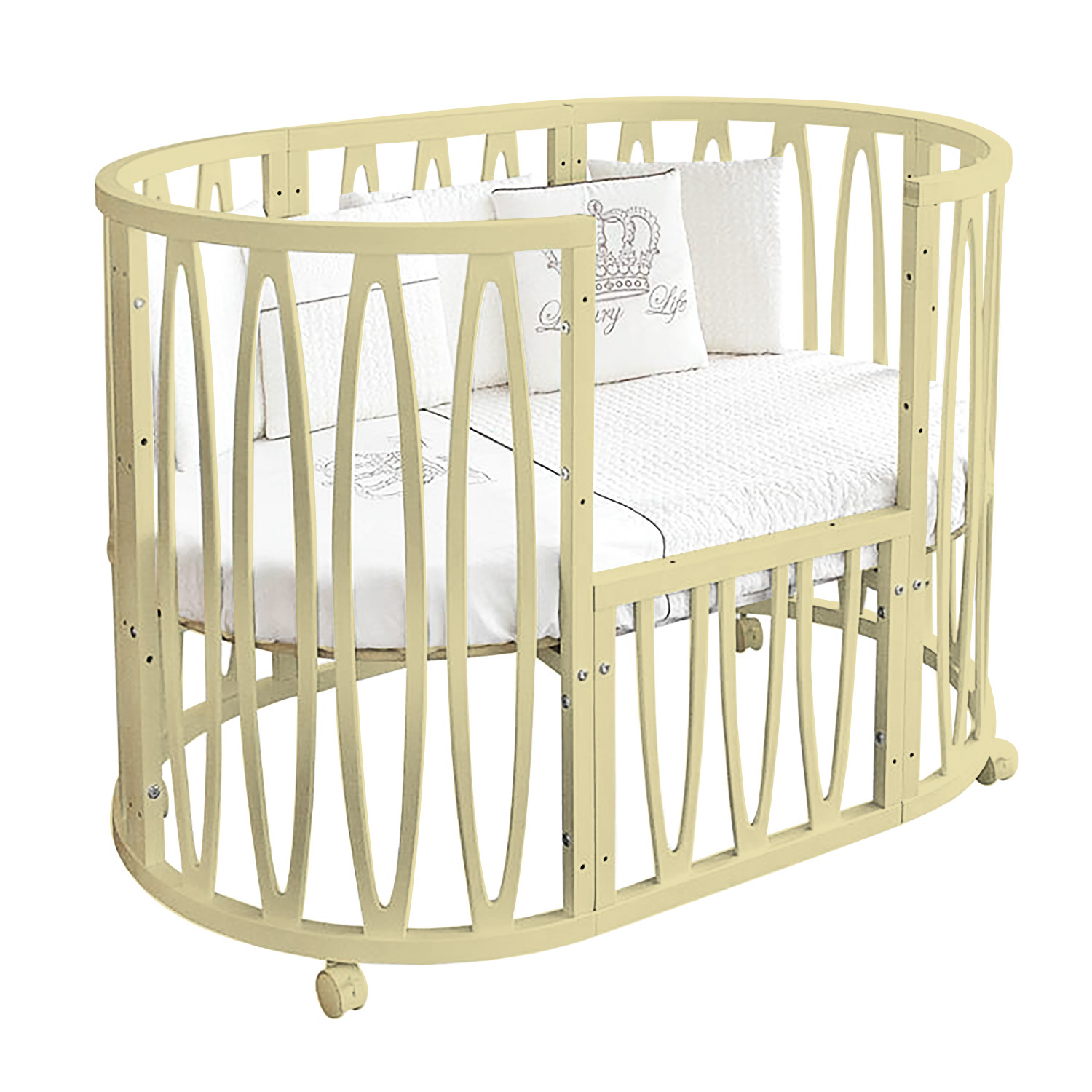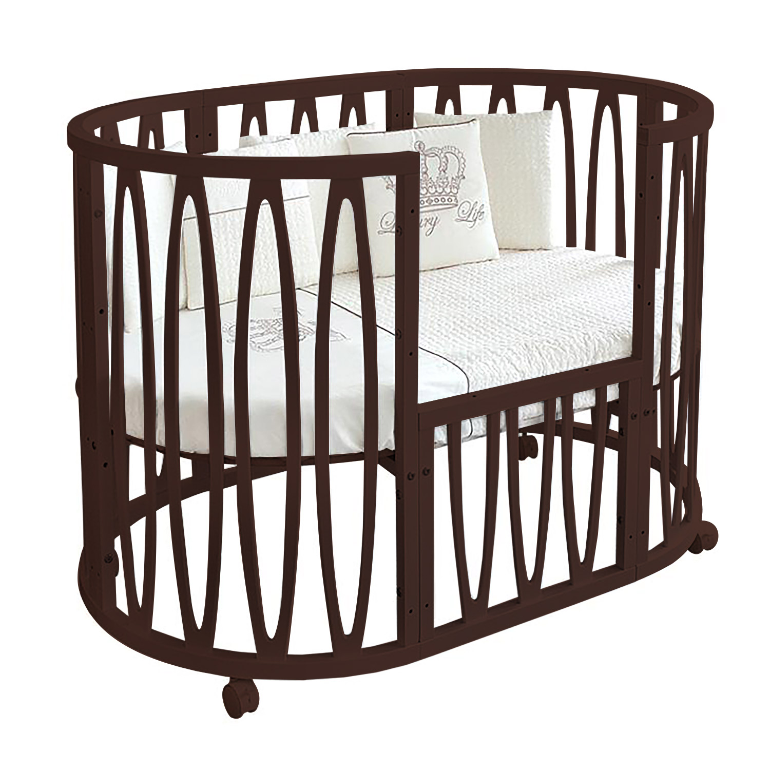 - Съемная передняя стенка (в овальной кроватке).