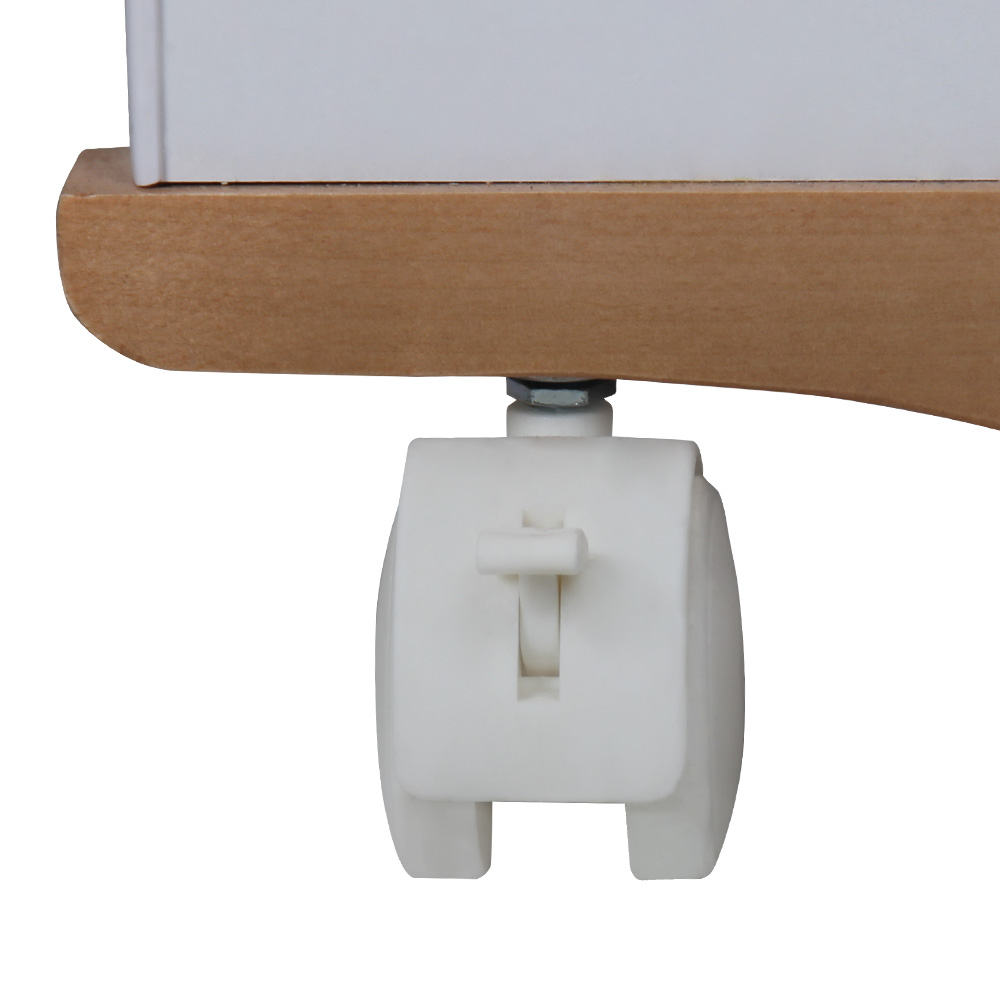 Может использоваться в двух вариантах - на колесах или как кроватка-качалка. Полукруглые полозья имеют стопоры, сохраняющие безопасную амплитуду движения, что обеспечивает комфортное колыбельное укачивание. Колеса легко снимаются и устанавливаются, оснащены стопорами-блокировками. Роликовые опоры помогут легко перемещать кроватку на нужное место.