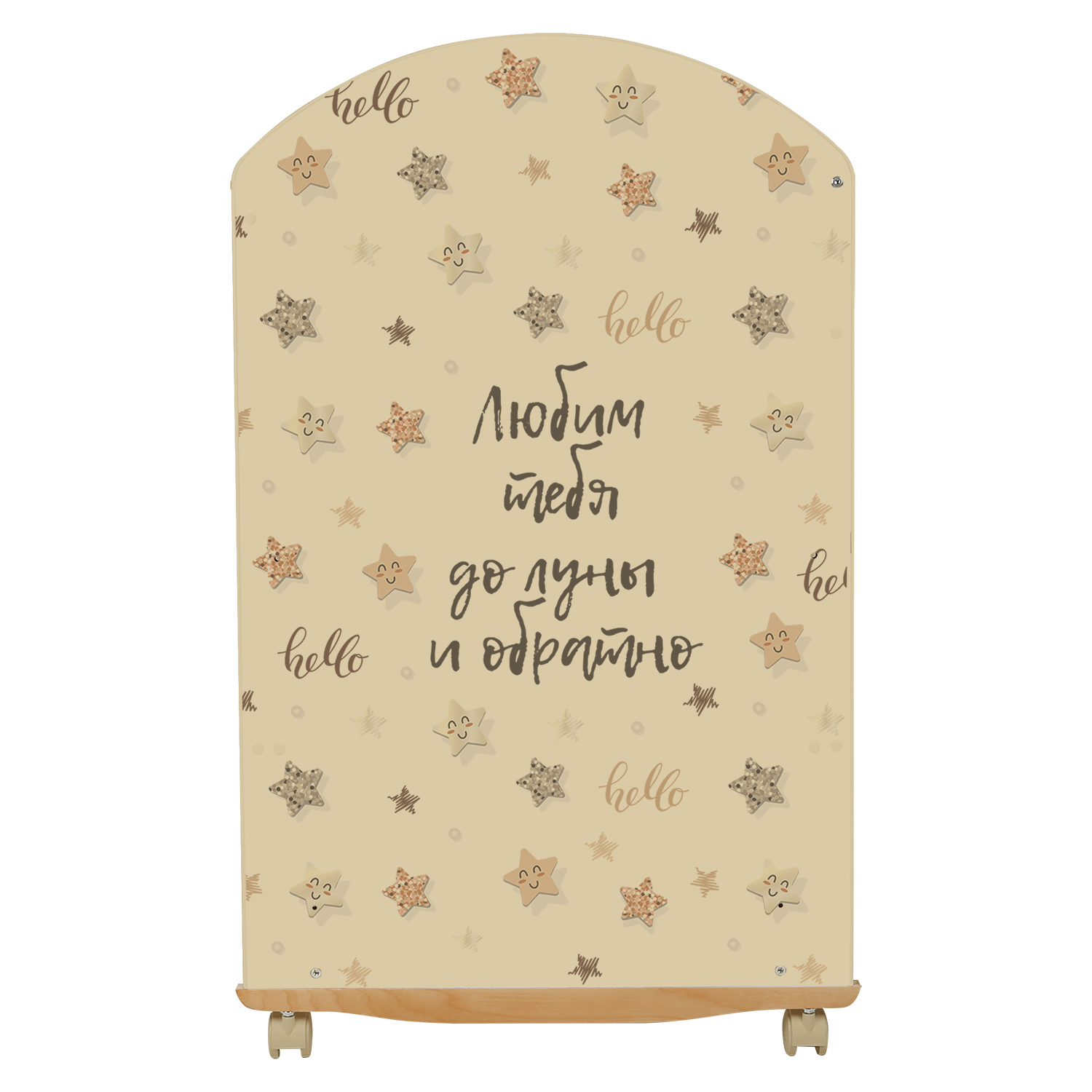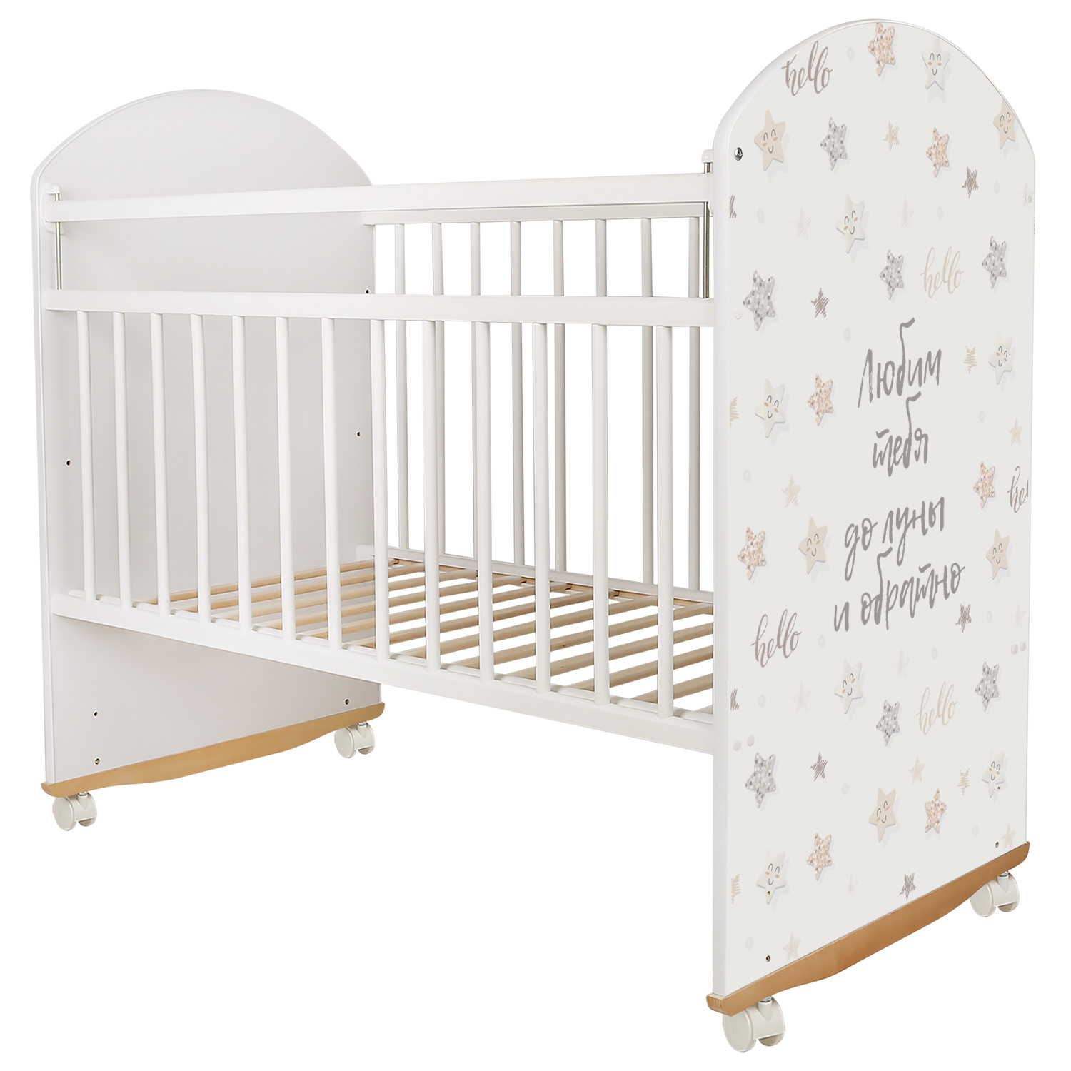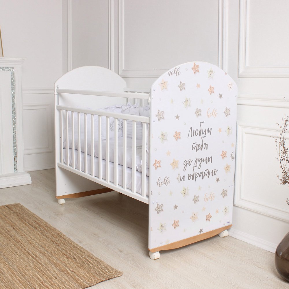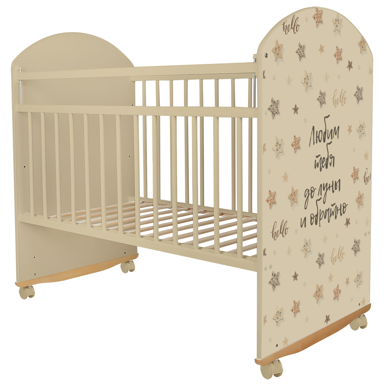 Кровать Indigo With Love Star BEIGE колесо-качалка (Индиго Стар Бейдж) - предназначена для детей от рождения до трёх лет. Изготовлена из экологически чистого массива березы российского производства и покрыта гипоаллергенным лаком из натуральных компонентов, безопасным для малышей. Конструкция выполнена без выступающих углов и неровностей.