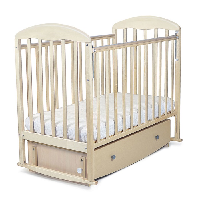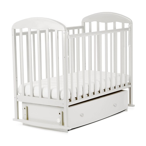 Indigo ВЕНЕЦИЯ (Индиго) - детская кровать в которой предусмотрены все варианты укачивания: и стандартные полозья-качалки, и маятник поперечного качания. При этом маятник при желании можно зафиксировать. Ящик под кроваткой выдвигается с помощью двух ручек на двух надежных направляющих. Даже если малыш спит в кроватке, ящик выдвигается совершенно бесшумно.