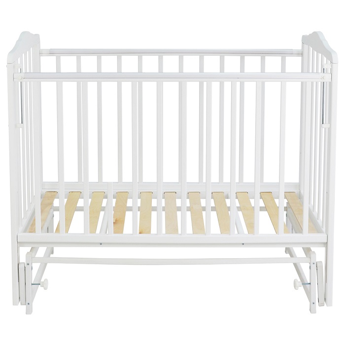 Кроватка оснащена поперечным маятником, который поможет родителям успокоить и уложить ребенка спать. Качание плавное и бесшумное. Во время бодрствования ребенка маятник легко фиксируется.