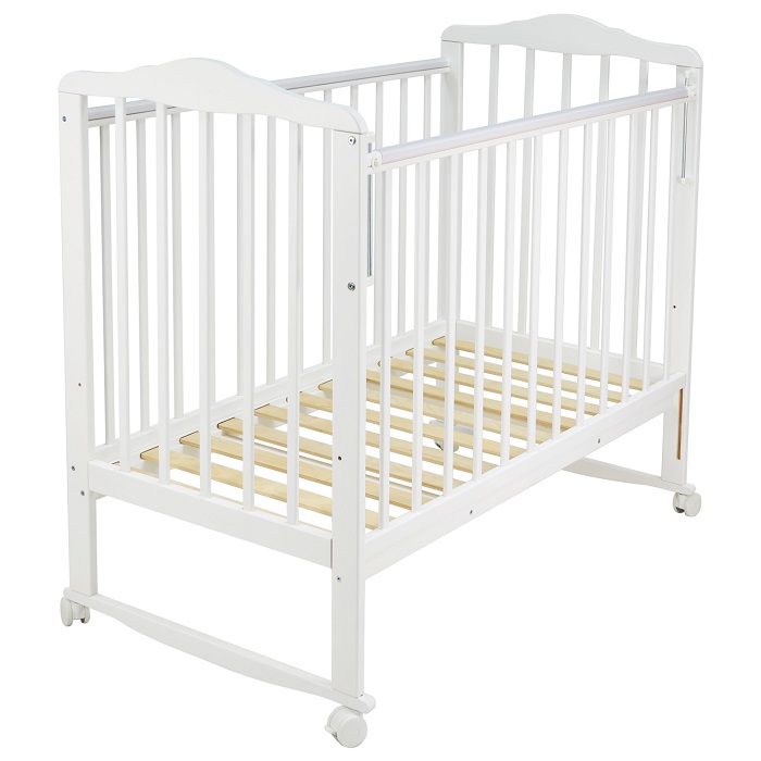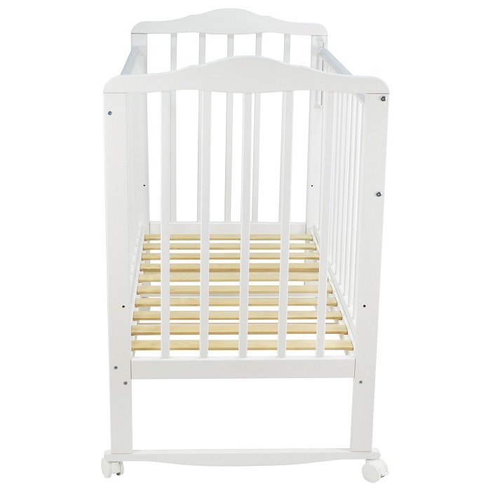 - Снабженная удобными колесами, кроватка легко перемещается по комнате, обеспечивая удобство родителям и разнообразие в расположении кроватки.