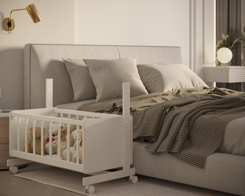 Кроватка имеет множество регулировок по высоте, что позволит идеально подобрать необходимую для вас высоту спального ложа.