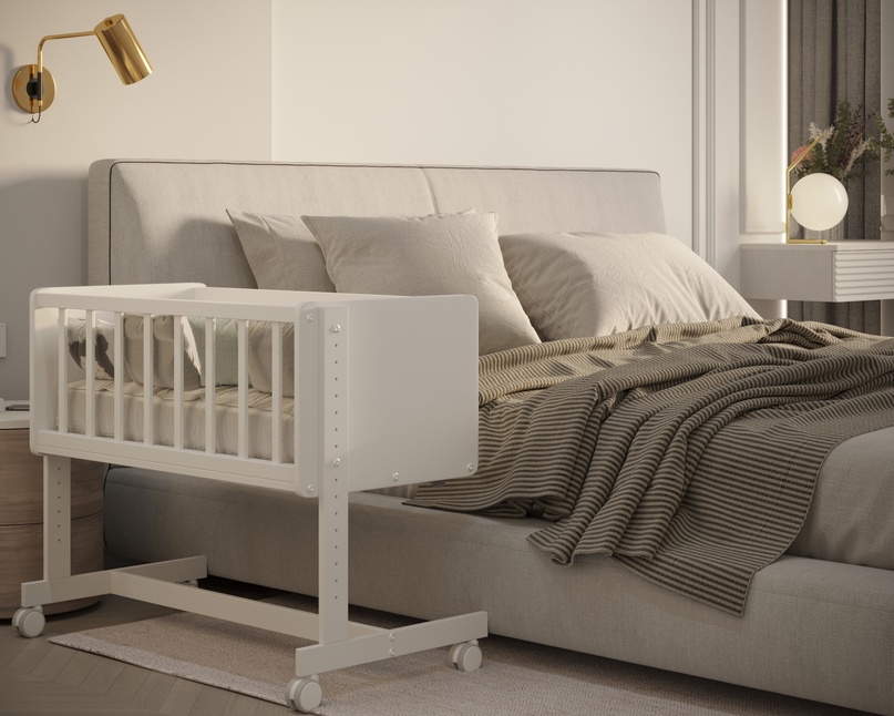 - Современная кроватка для ребенка с рождения до 6 месяцев.